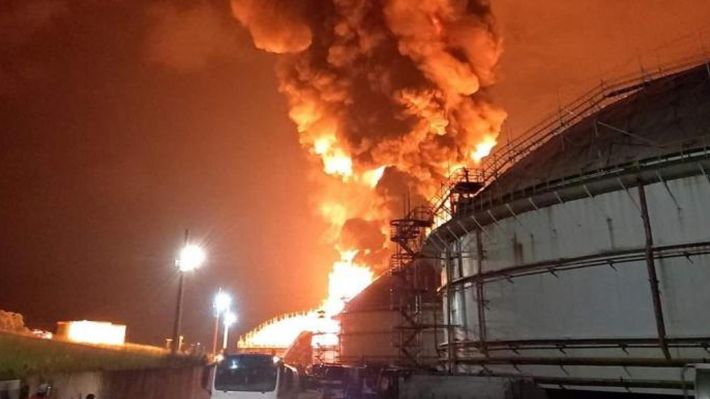 Από την ισχυρή έκρηξη που σημειώθηκε τα ξημερώματα του Σαββάτου, τυλίχθηκε στις φλόγες μια δεύτερη δεξαμενή, η οποία περιείχε 52.000 κυβικά μέτρα μαζούτ.