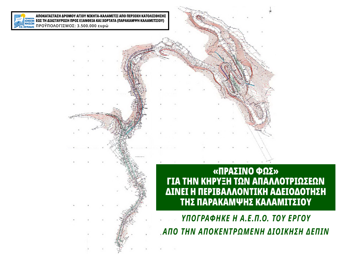 ΠΕ Λευκάδας: Υπογράφηκε από την Αποκεντρωμένη Διοίκηση ΔΕΠΙΝ η ΑΕΠΟ του έργου της παράκαμψης του Καλαμιτσίου