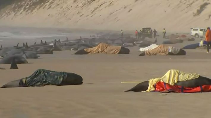 Αυστραλία: Πέθαναν περίπου 200 φάλαινες που είχαν εξοκείλει σε παραλία της Τασμανίας