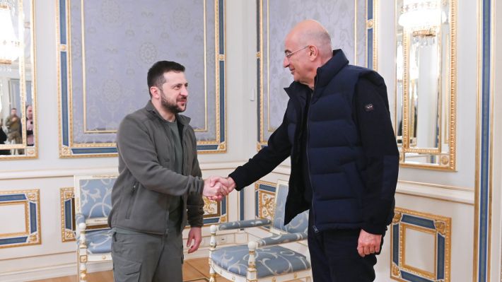Στη συνέχεια ο Ν. Δένδιας είχε συνάντηση με τον Πρόεδρο της Ουκρανίας, στον οποίο, σύμφωνα με ανάρτησή του στο twitter, είπε ότι «η Ελλάδα συνεχίζει την αμέριστη αλληλεγγύη προς την Ουκρανία και καταδικάζει πλήρως κάθε απόπειρα αλλαγής των συνόρων από δυνάμεις του αναθεωρητισμού».