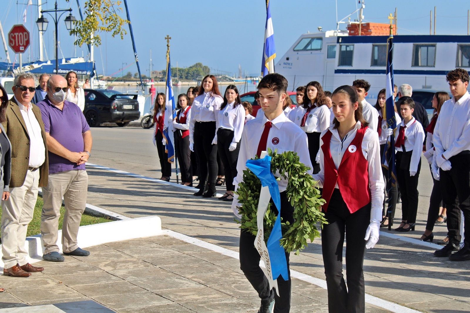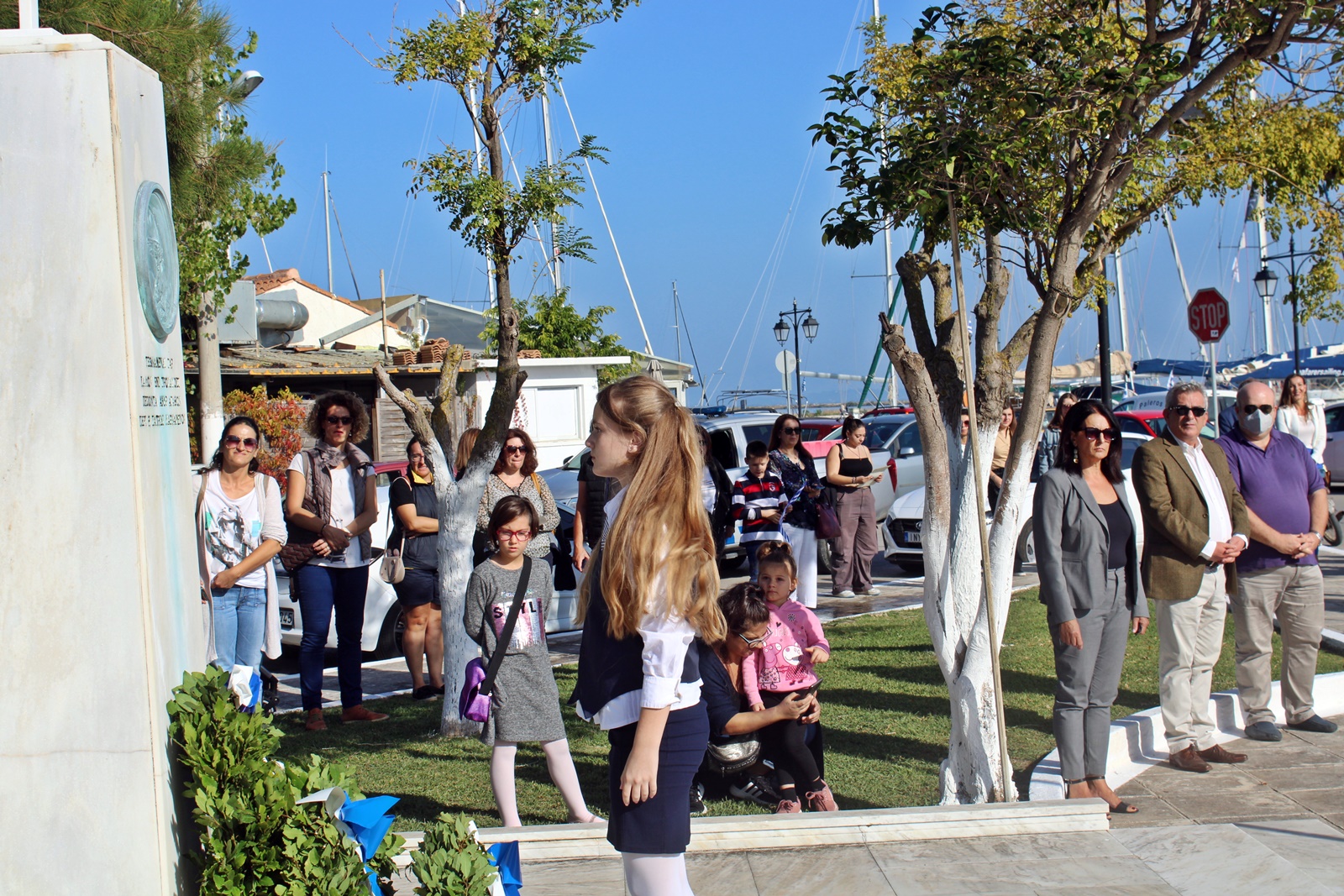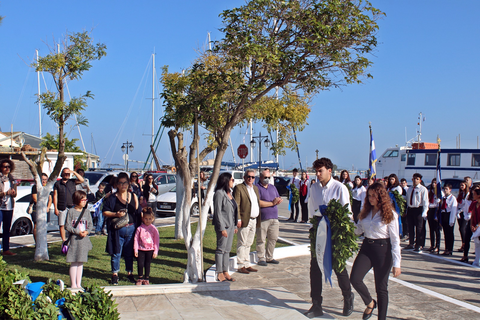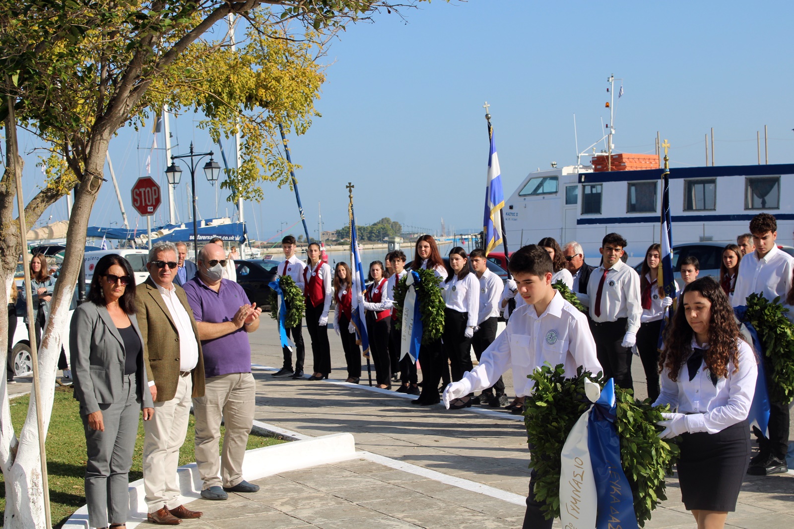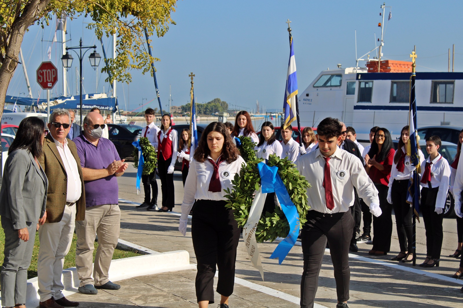 Με το θερμόμετρο να δείχνει τους 28 βαθμούς Κελσίου ολοκληρώθηκε γύρω στις 11:30 το πρωί της Πέμπτης 27 Οκτωβρίου 2022 η κατάθεση στεφάνων στο Ηρώο της πόλης από εκπροσώπους των μαθητών των σχολείων της Πρωτοβάθμιας και Δευτεροβάθμιας Εκπαίδευσης, μετά το πέρας της οποίας τηρήθηκε ενός λεπτού σιγή.