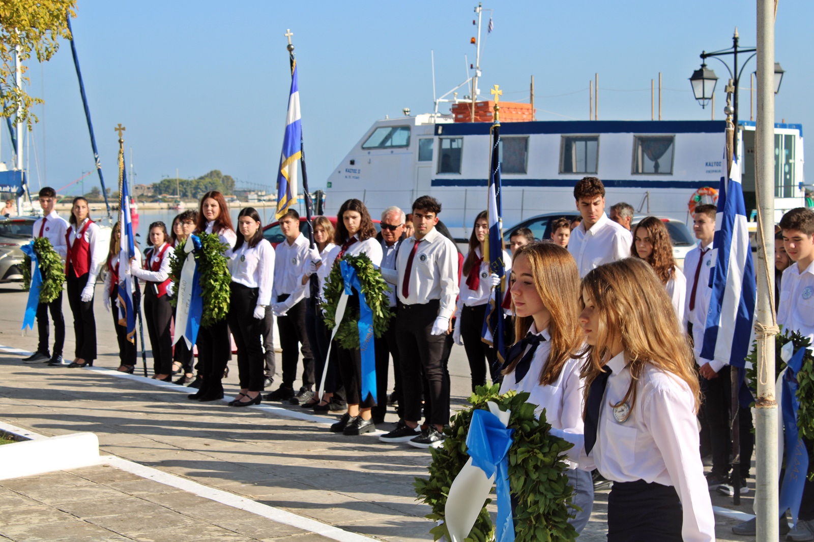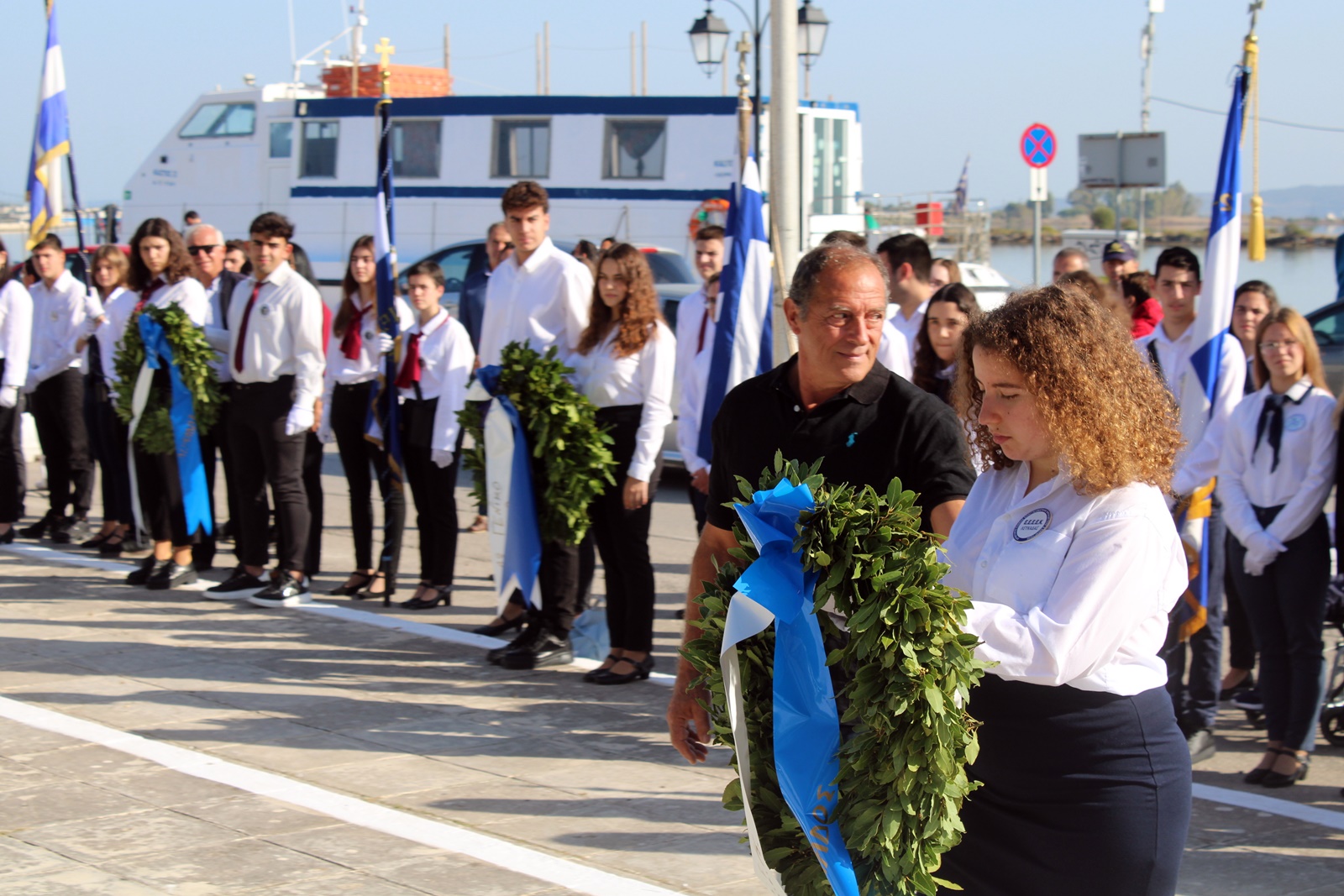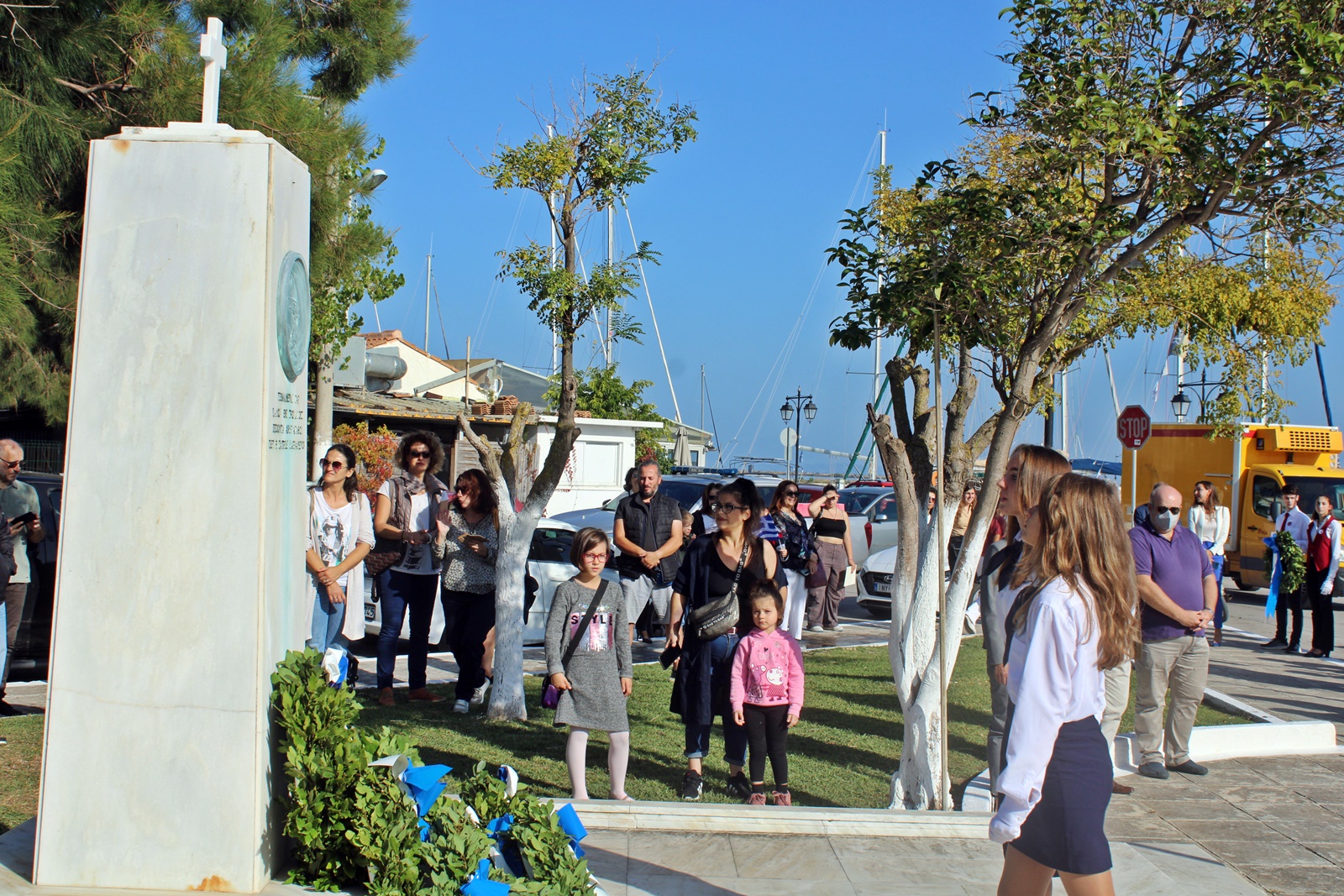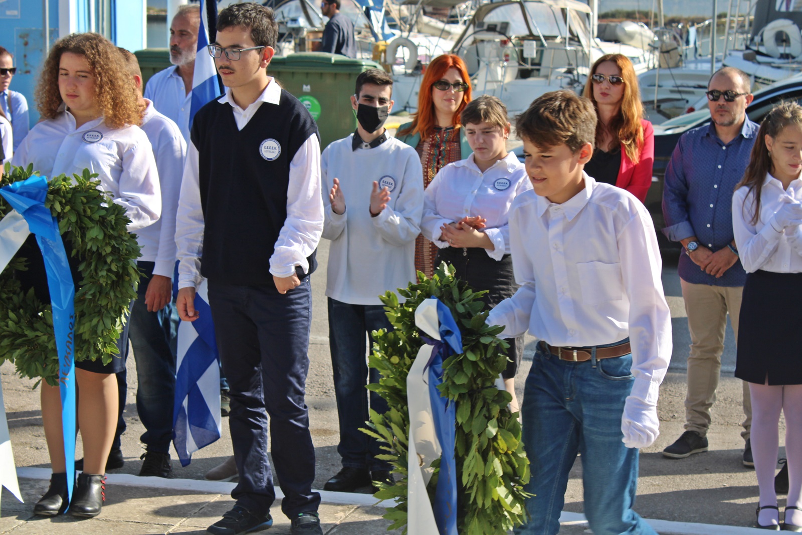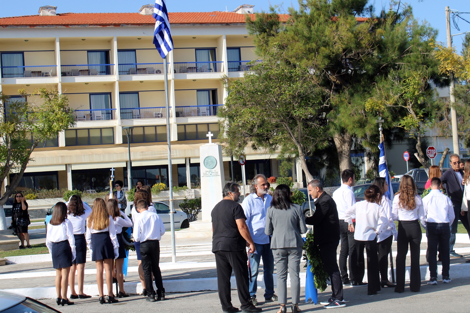 Με το θερμόμετρο να δείχνει τους 28 βαθμούς Κελσίου ολοκληρώθηκε γύρω στις 11:30 το πρωί της Πέμπτης 27 Οκτωβρίου 2022 η κατάθεση στεφάνων στο Ηρώο της πόλης από εκπροσώπους των μαθητών των σχολείων της Πρωτοβάθμιας και Δευτεροβάθμιας Εκπαίδευσης, μετά το πέρας της οποίας τηρήθηκε ενός λεπτού σιγή.
