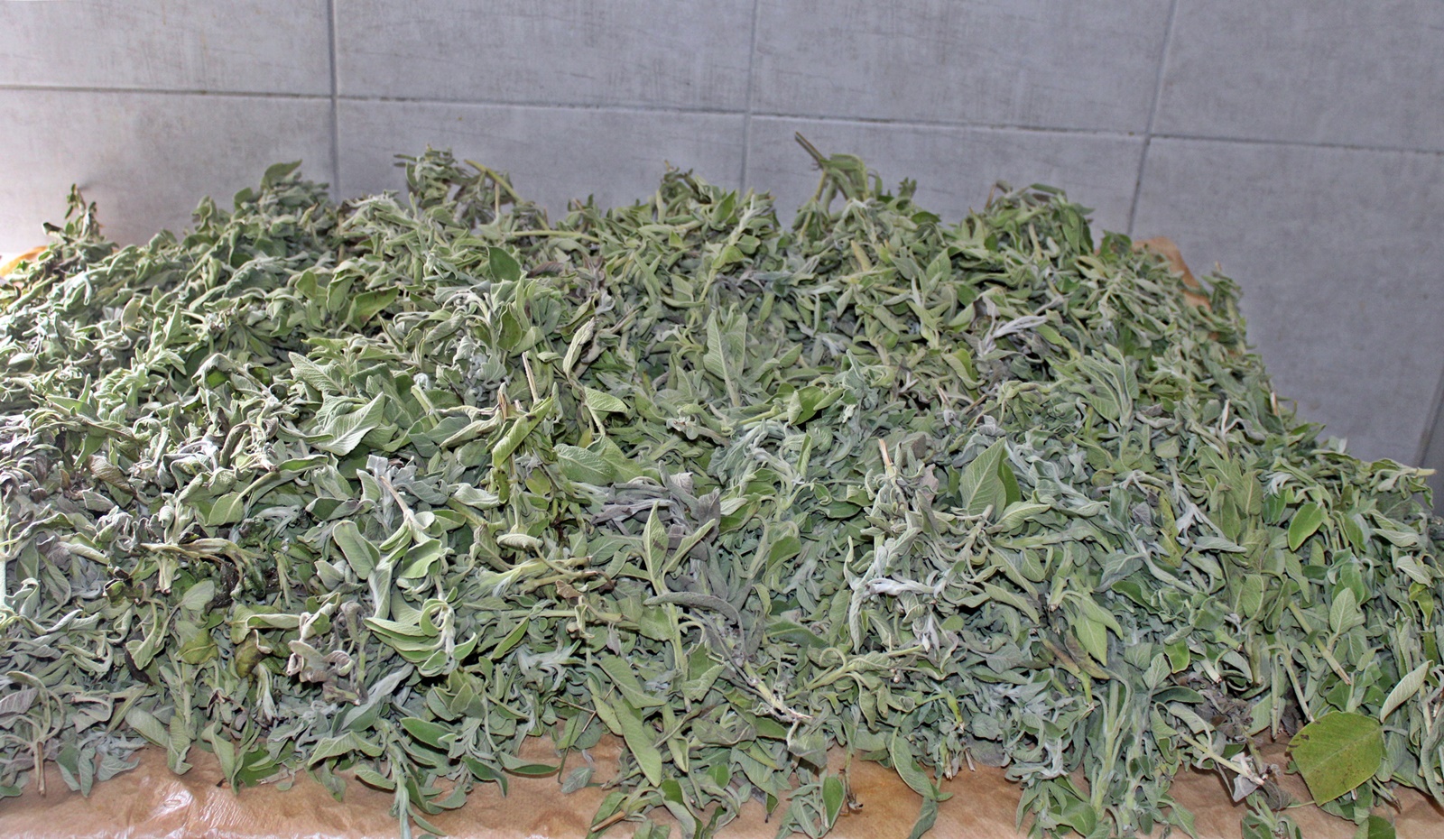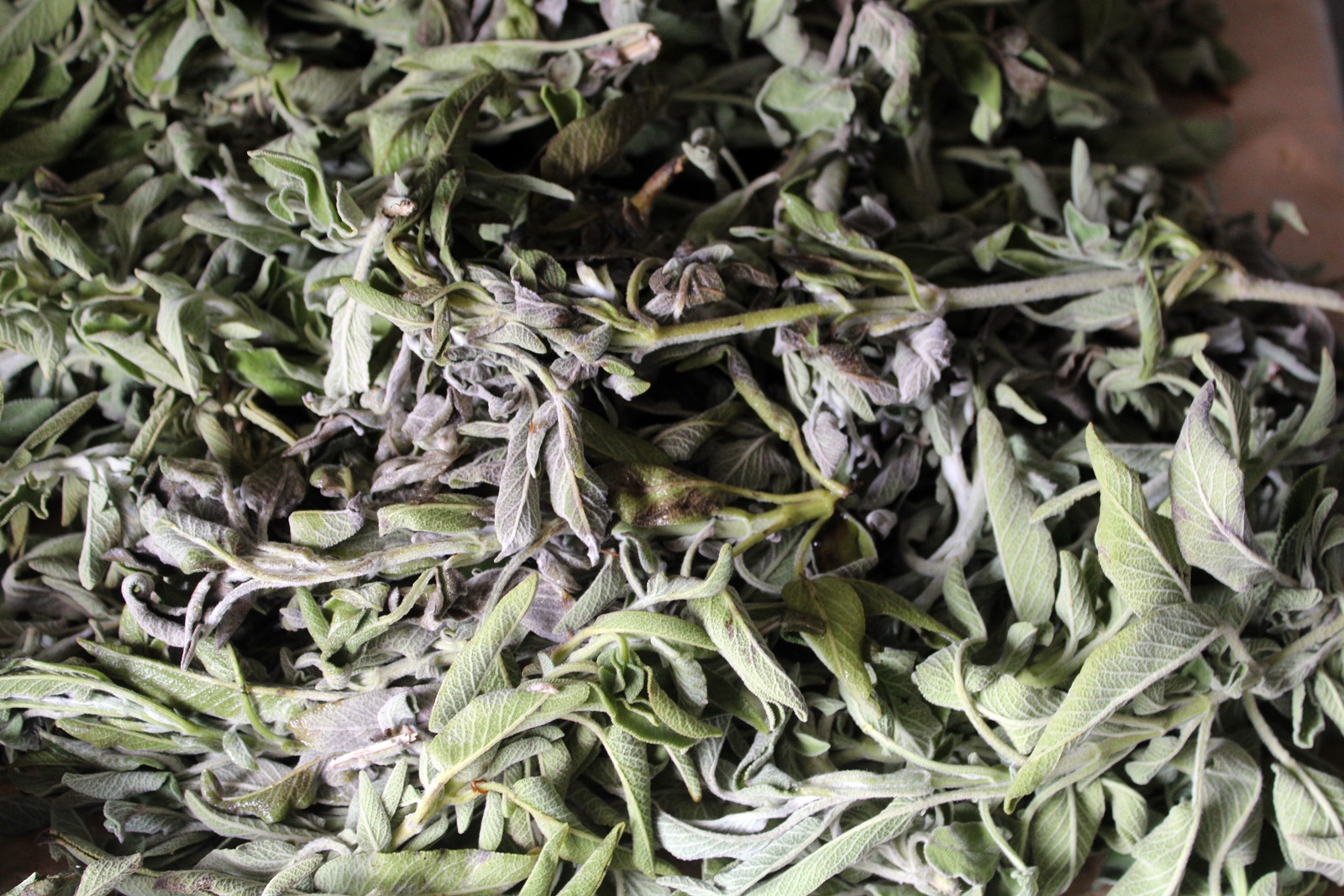 Είχε απλώσει τα φύλλα του φυτού για να ξεραθούν. Όπως μας είπε, τα είχε μαζέψει πάνω από τον ενετικό δρόμο της Νικιάνας. Βράζει τα φύλλα που μοσκοβολούν και τα πίνει ως αφέψημα, το γνωστό φασκόμηλο, για τον προστάτη.