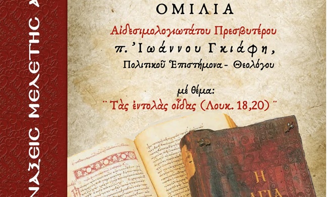 Συνάξεις Μελέτης Αγίας Γραφής: Ομιλία με θέμα «Τας εντολάς οίδας (Λουκ. 18-20)»