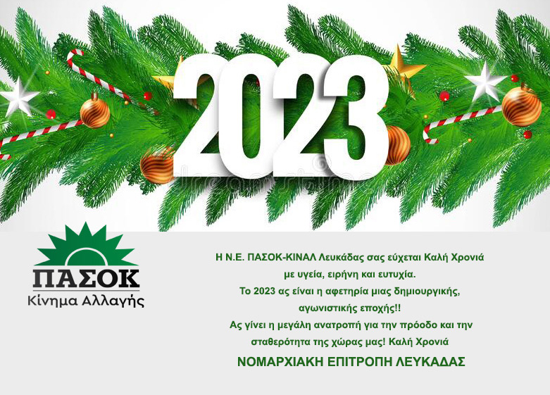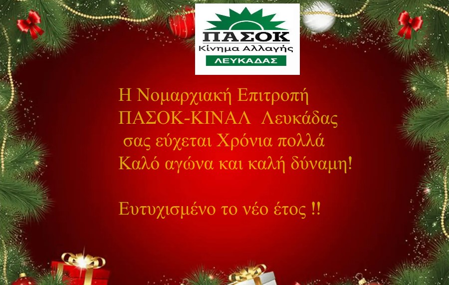 Η Ν.Ε. ΠΑΣΟΚ-ΚΙΝΑΛ Λευκαδας σας εύχεται Καλή Χρονιά με υγεία, ειρήνη και ευτυχία.