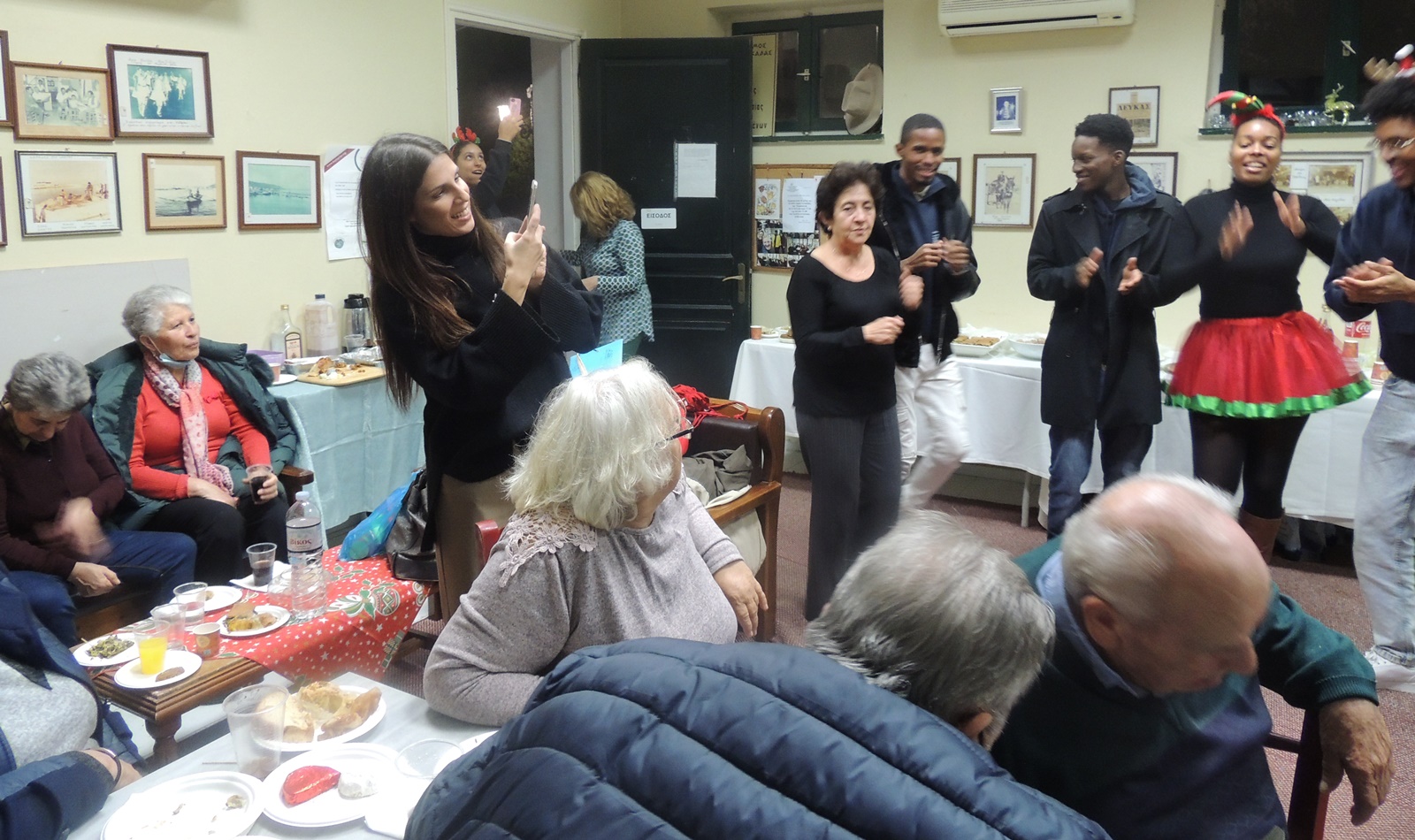 Οι εθελοντές της Μ.Κ.Ο. Μονοπάτια Αλληλεγγύης διασκέδασαν τα μέλη του ΚΑΠΗ, χορεύοντας παραδοσιακούς χορούς και προσφέροντας εδέσματα από τις πατρίδες τους (νησιά Καραϊβικής). Επίσης μοιράστηκαν χειροποίητα δωράκια από τον «Άγιο Βασίλη».