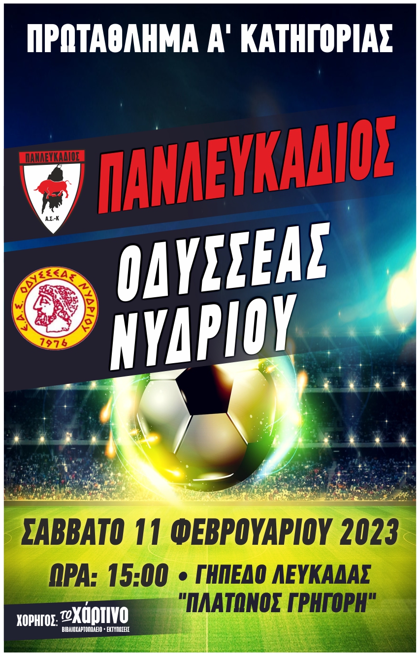 Το τοπικό ντέρμπι μεταξύ του Πανλευκάδιου και του Οδυσσέα Νυδριού που θα γίνει την Σάββατο 11 Φλεβάρη 2023, στις 3:00 το απόγευμα, στο Δημοτικό Στάδιο Λευκάδας «Πλάτωνας Γληγόρης», είναι το ματς που κυριαρχεί για την 12η αγωνιστική της Α΄ ΕΠΣ Πρέβεζας-Λευκάδας.