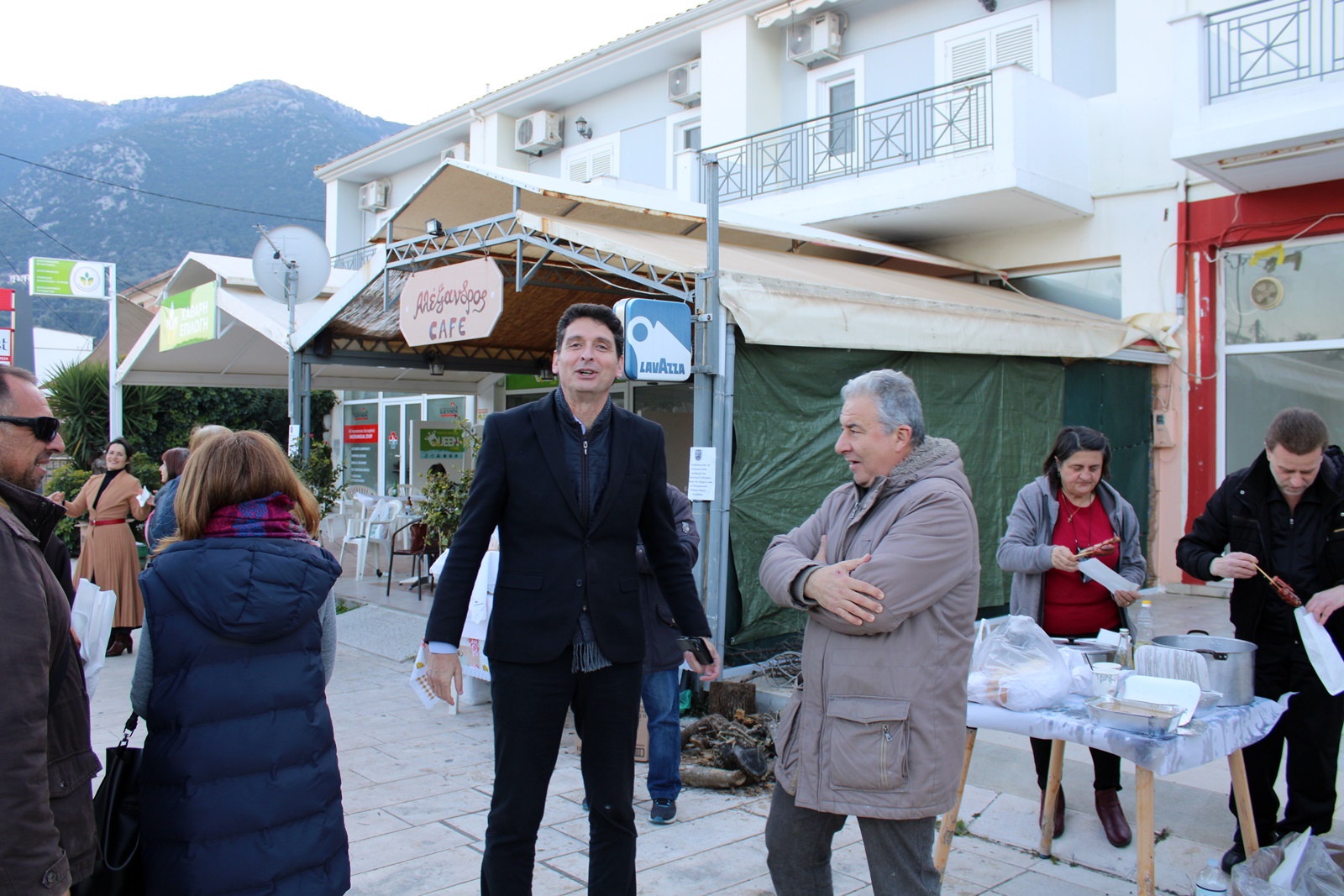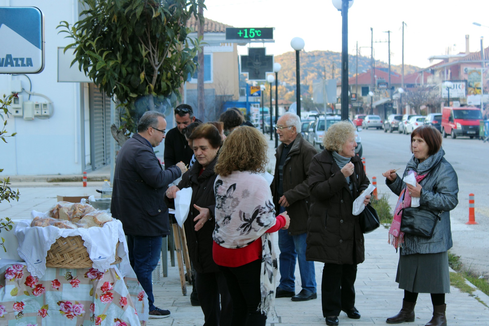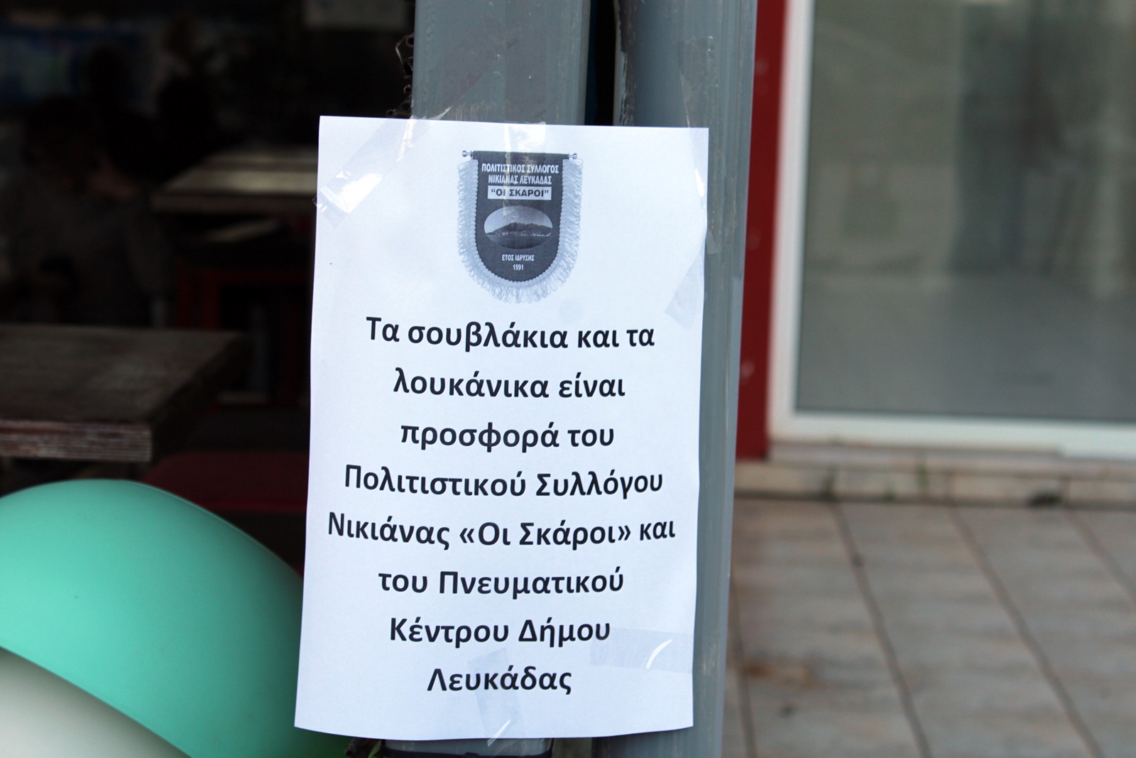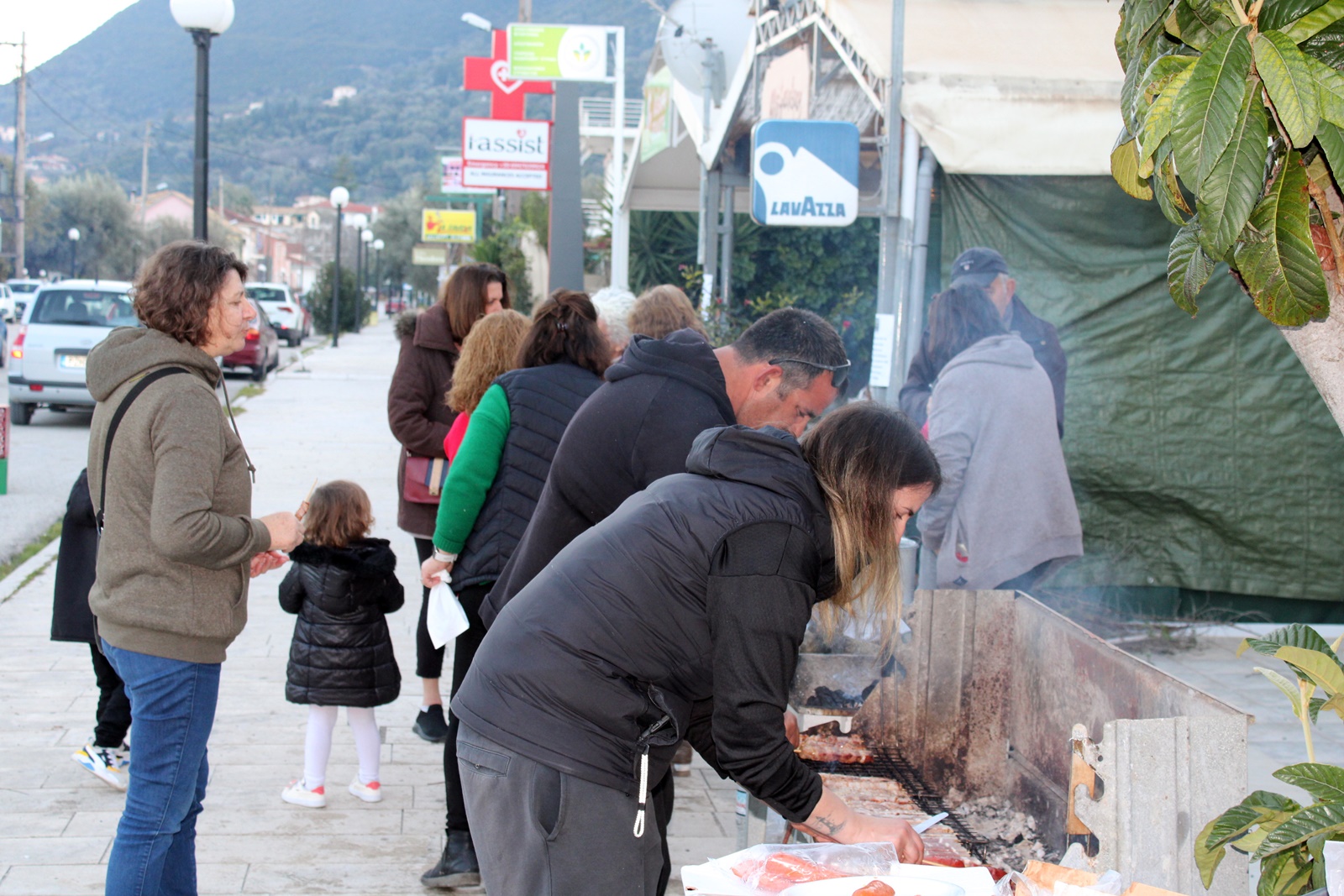 Τα σουβλάκια και τα λουκάνικα που προσφέρθηκαν δωρεάν σε κατοίκους του χωριού και περαστικούς ήταν προσφορά του συλλόγου και του Πνευματικού Κέντρου του Δήμου Λευκάδας.