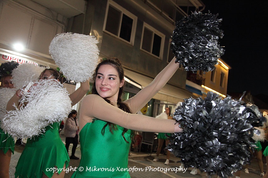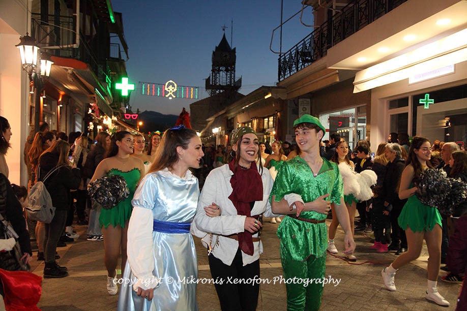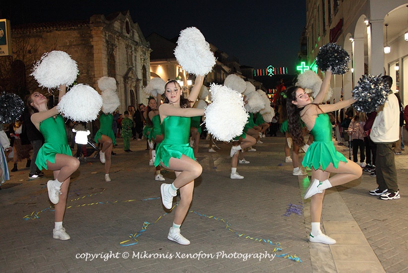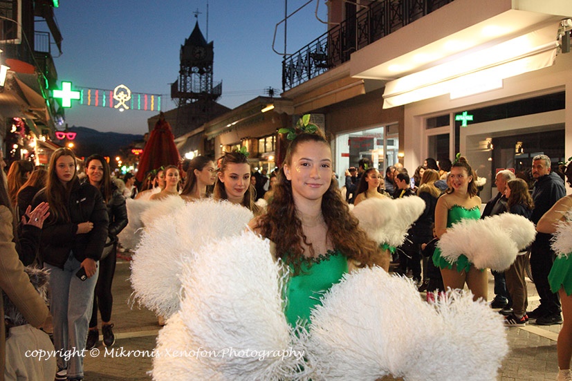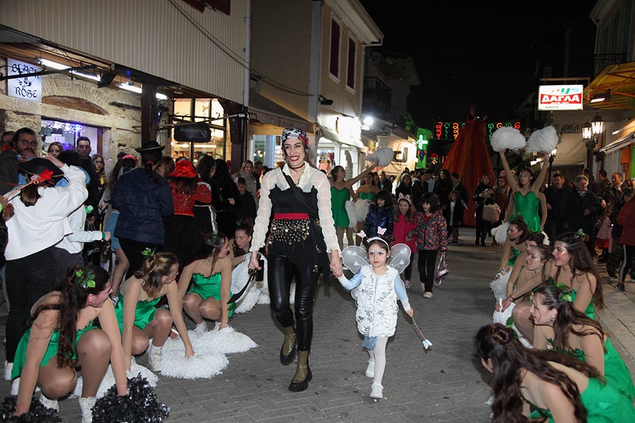 Συνοδεία μουσικής, χορού και μαζορετών, η καρναβαλική πομπή με αφετηρία την πλατεία του Αγίου Μηνά κατέληξε στην κεντρική πλατεία.