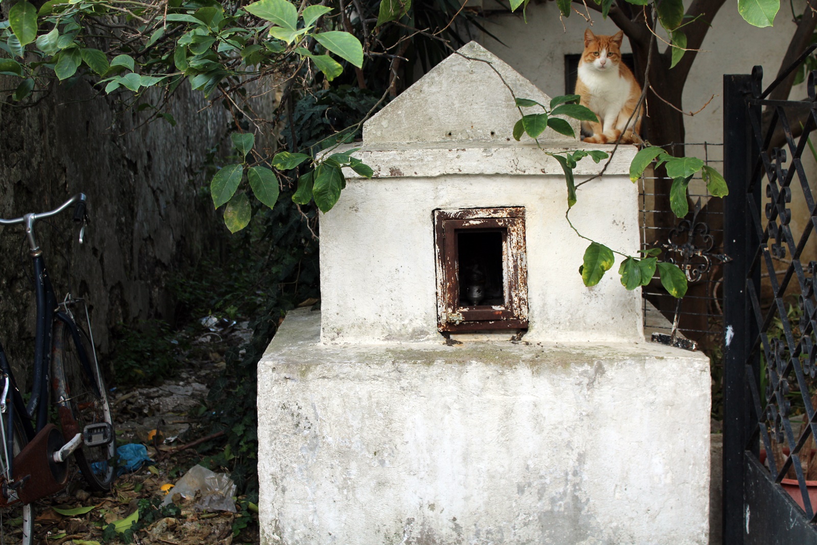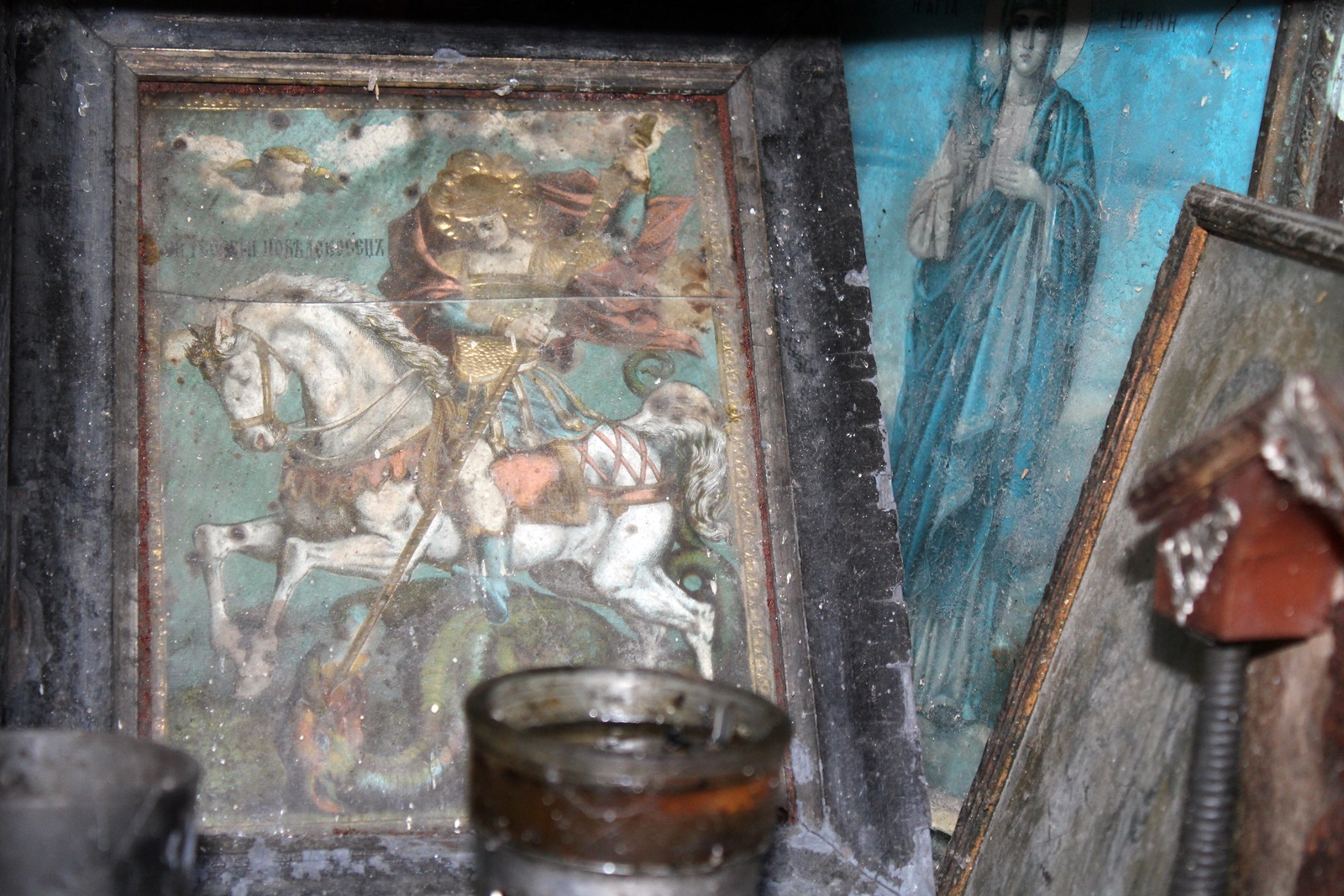 Ένα παλιό εικόνισμα (εικονοστάσιο) που φωτογραφήσαμε πρόσφατα στην πόλη της Λευκάδας. Είναι αφιερωμένο στον δρακοντοκτόνο Άγιο Γεώργιο στην Αγία Ειρήνη σύμφωνα με σχόλιο αναγνώστριας, αν και όπως συχνά συμβαίνει υπάρχει «συγκατοίκηση» και με άλλους αγίους.