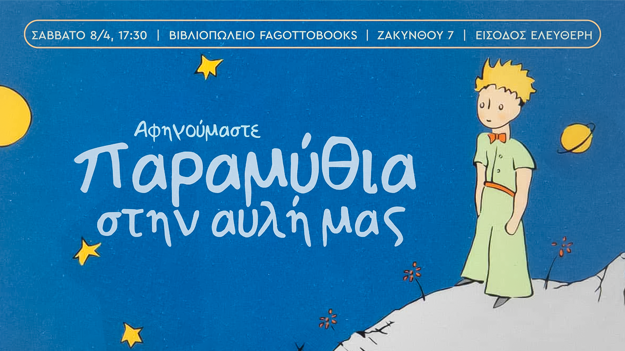 Το απόγευμα του Σαββάτου 8 Απρίλη, το βιβλιοπωλείο Fagottobooks με χαρά προσκαλεί στην αυλή του, στη Ζακύνθου 7, τους μικρούς του φίλους σε μια εκδήλωση αφήγησης παραμυθιών.