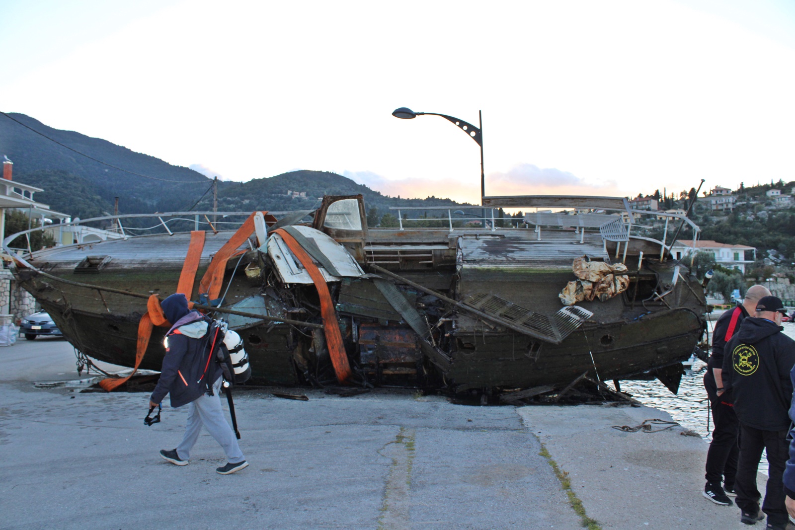 Η επιχείρηση ανέλκυσης ήταν πράγματι ιδιαίτερα απαιτητική. Δυο δύτες από το καταδυτικό κέντρο Lefkas Diving Center που εδρεύει στη Νικιάνα έδεσαν με ιμάντες το σκάφος και μετά από επίμονες προσπάθειες έγινε η ανέλκυσή του στην προβλήτα, ενώ αύριο αναμένεται να γίνει και η απομάκρυνση του σκάφους από το λιμάνι.
