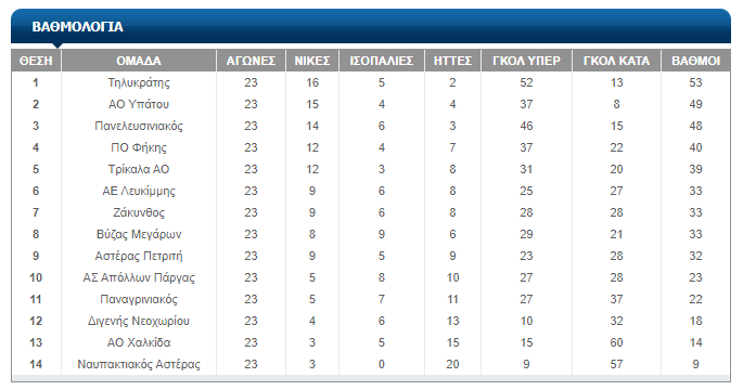 Η βαθμολογία του 3ου Ομίλου σε 23 αγώνες