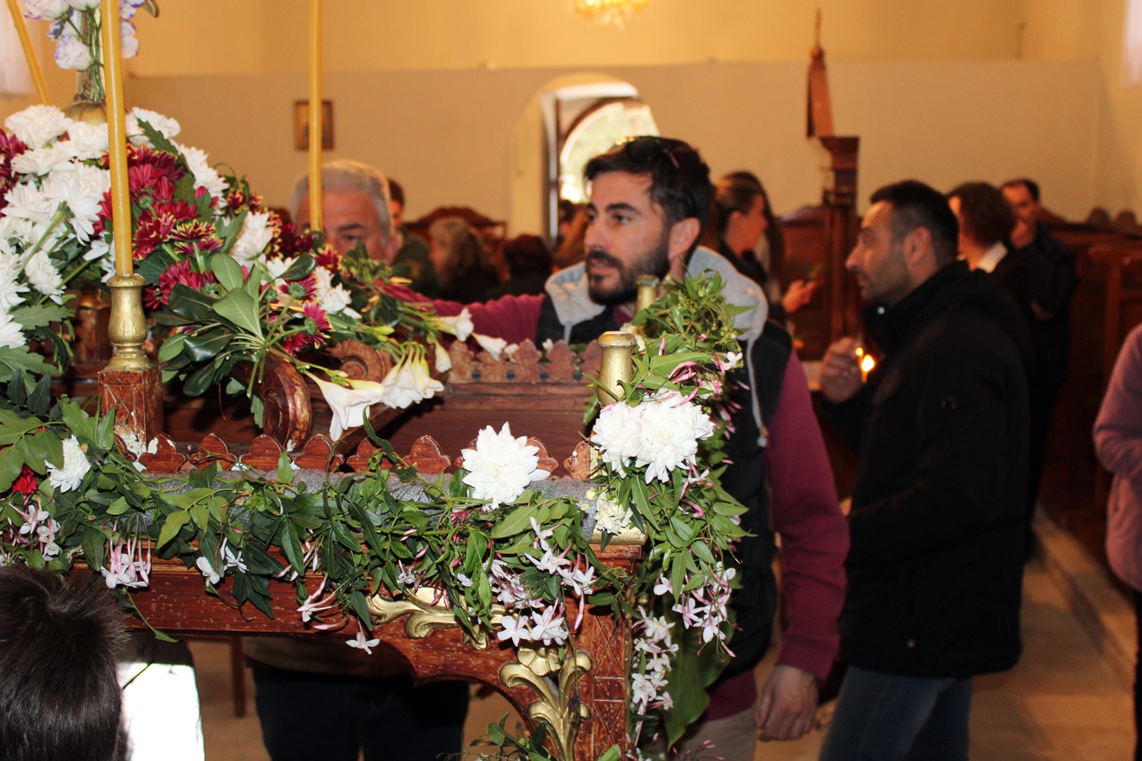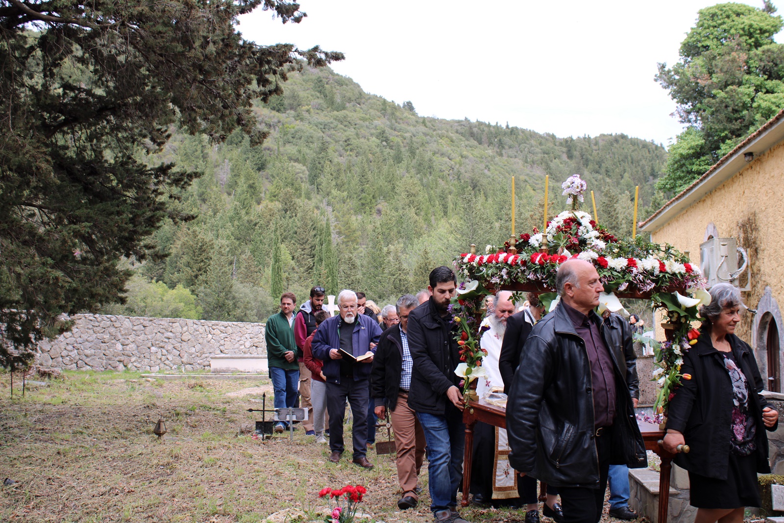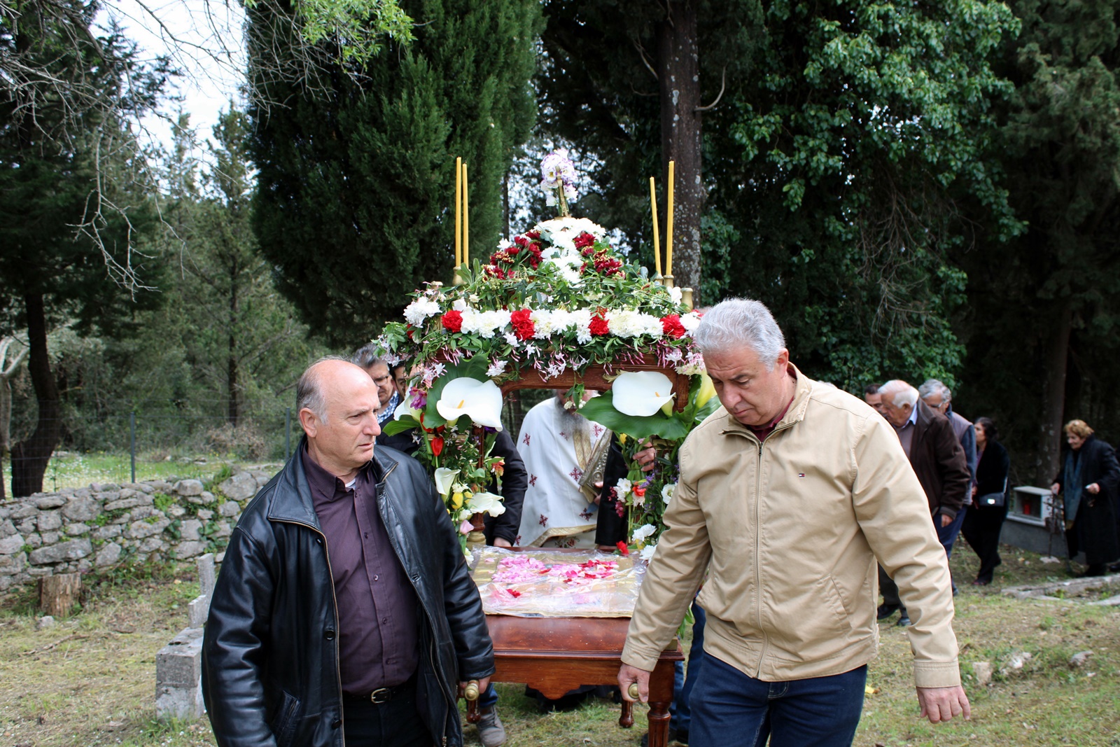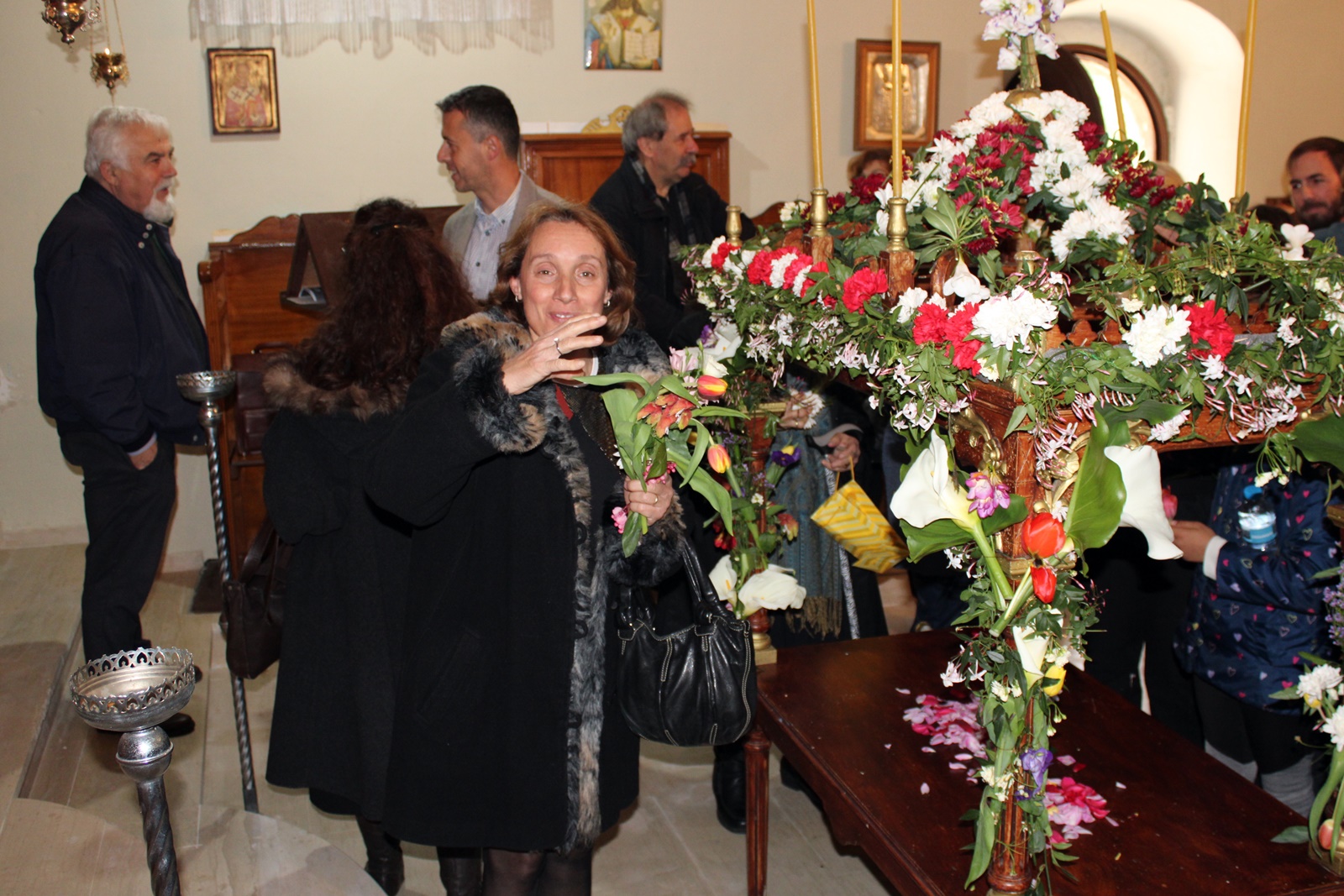 Ο παπα-Σωτήρης ευχαρίστησε ιδιαίτερα τους επιτρόπους Μπάμπη Κολυβά και Βάσω Μανωλίτση για τον ευπρεπισμό τόσο της εκκλησίας όσο και του προαύλιου χώρου καθώς και για την προετοιμασία του Επιταφίου.