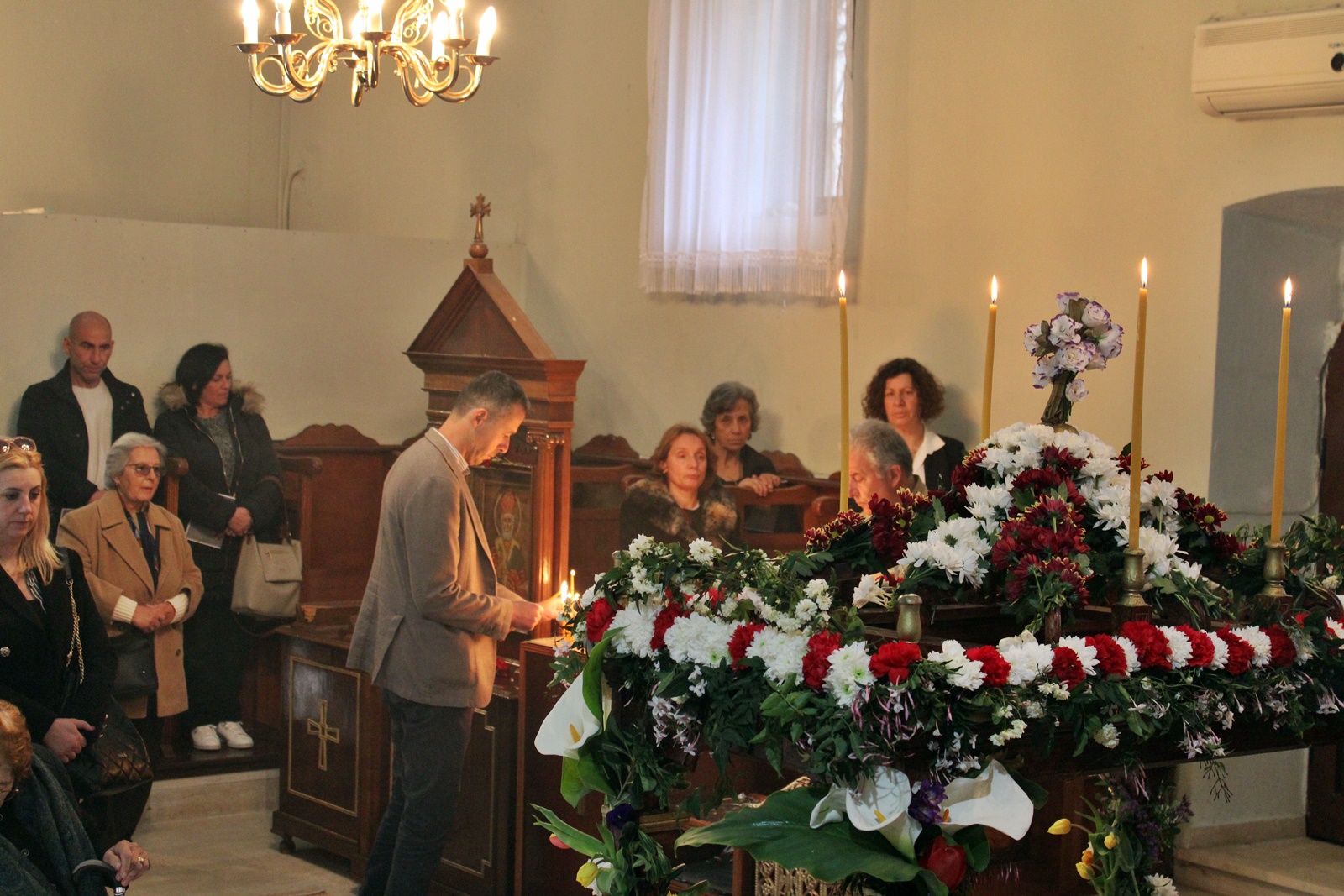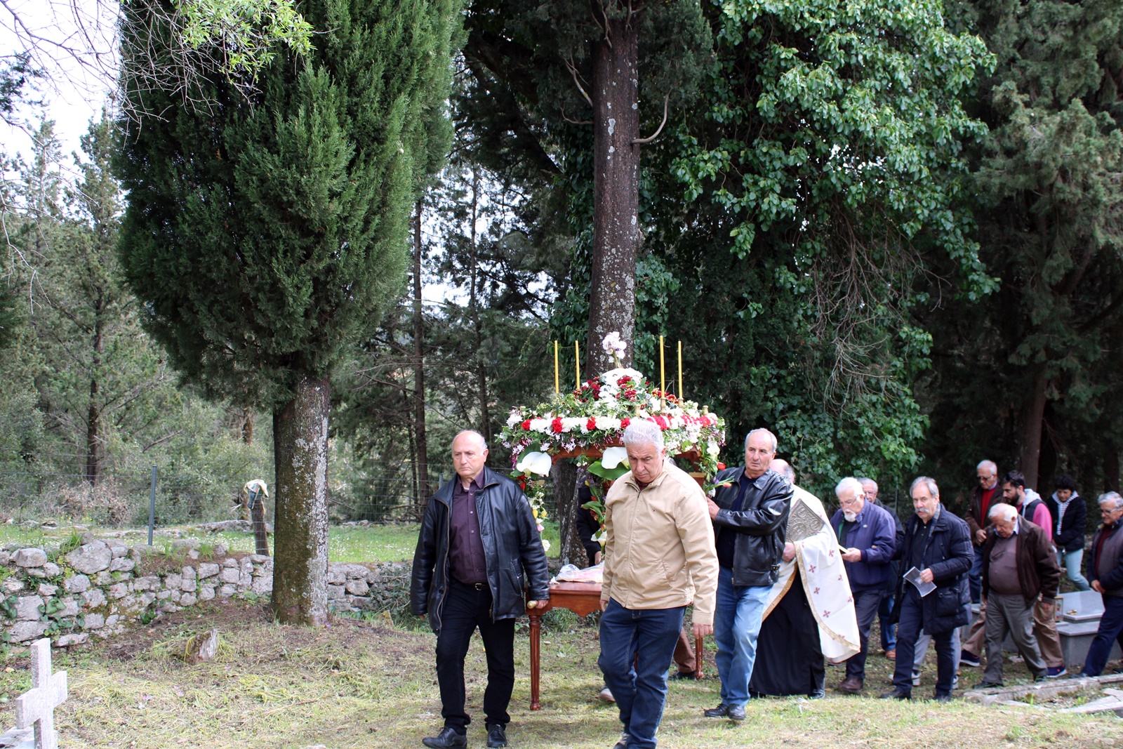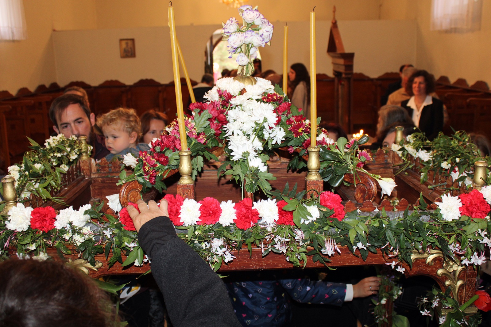 Ο παπα-Σωτήρης ευχαρίστησε ιδιαίτερα τους επιτρόπους Μπάμπη Κολυβά και Βάσω Μανωλίτση για τον ευπρεπισμό τόσο της εκκλησίας όσο και του προαύλιου χώρου καθώς και για την προετοιμασία του Επιταφίου.