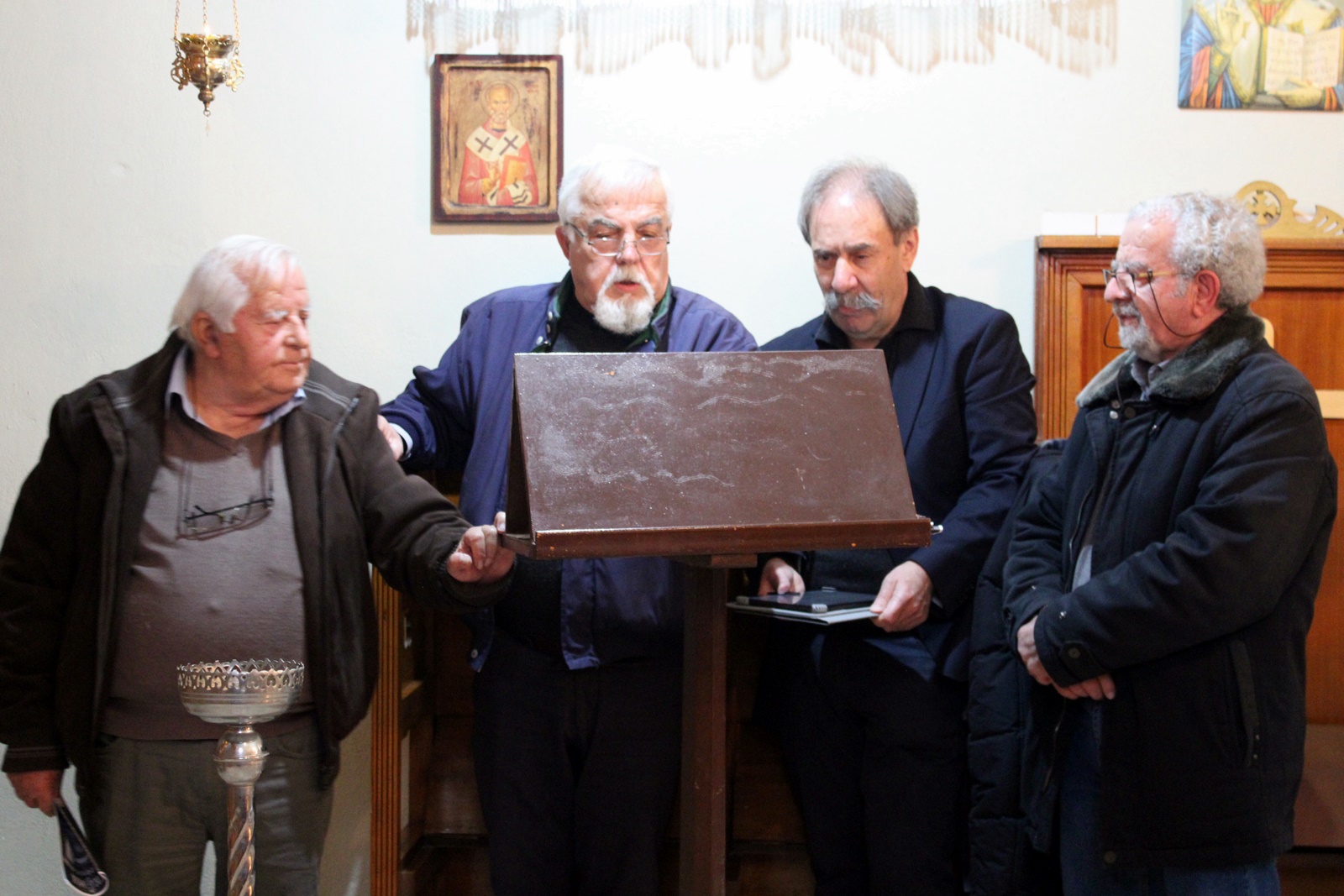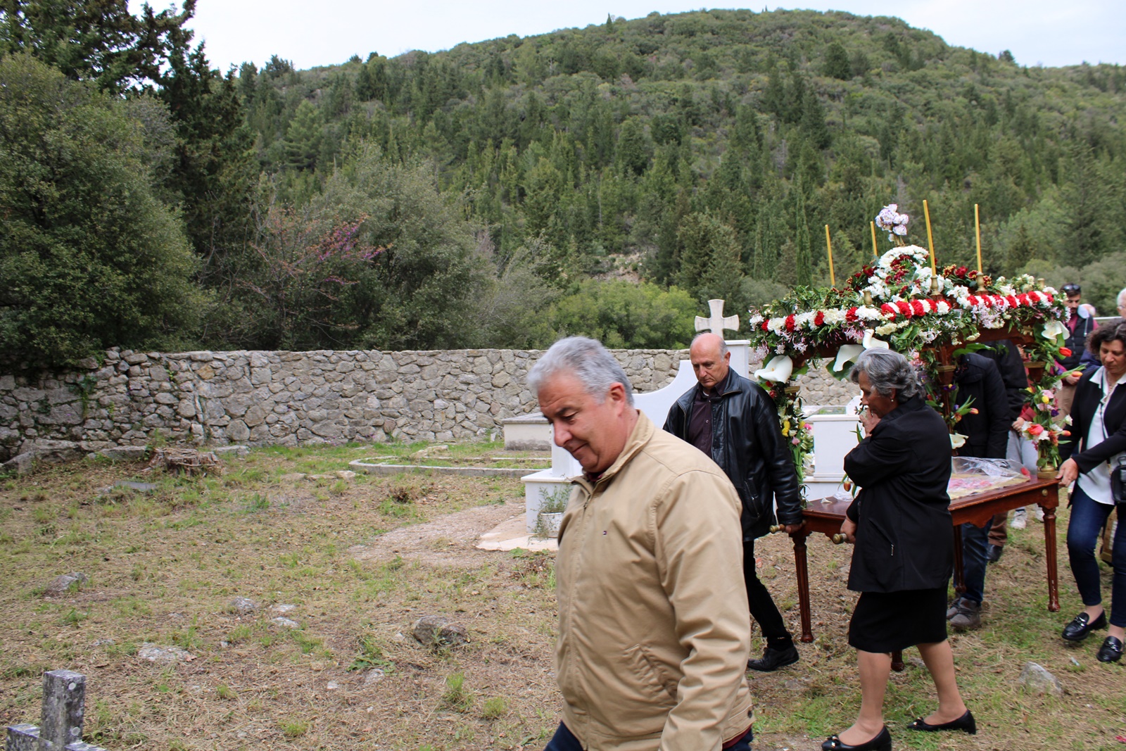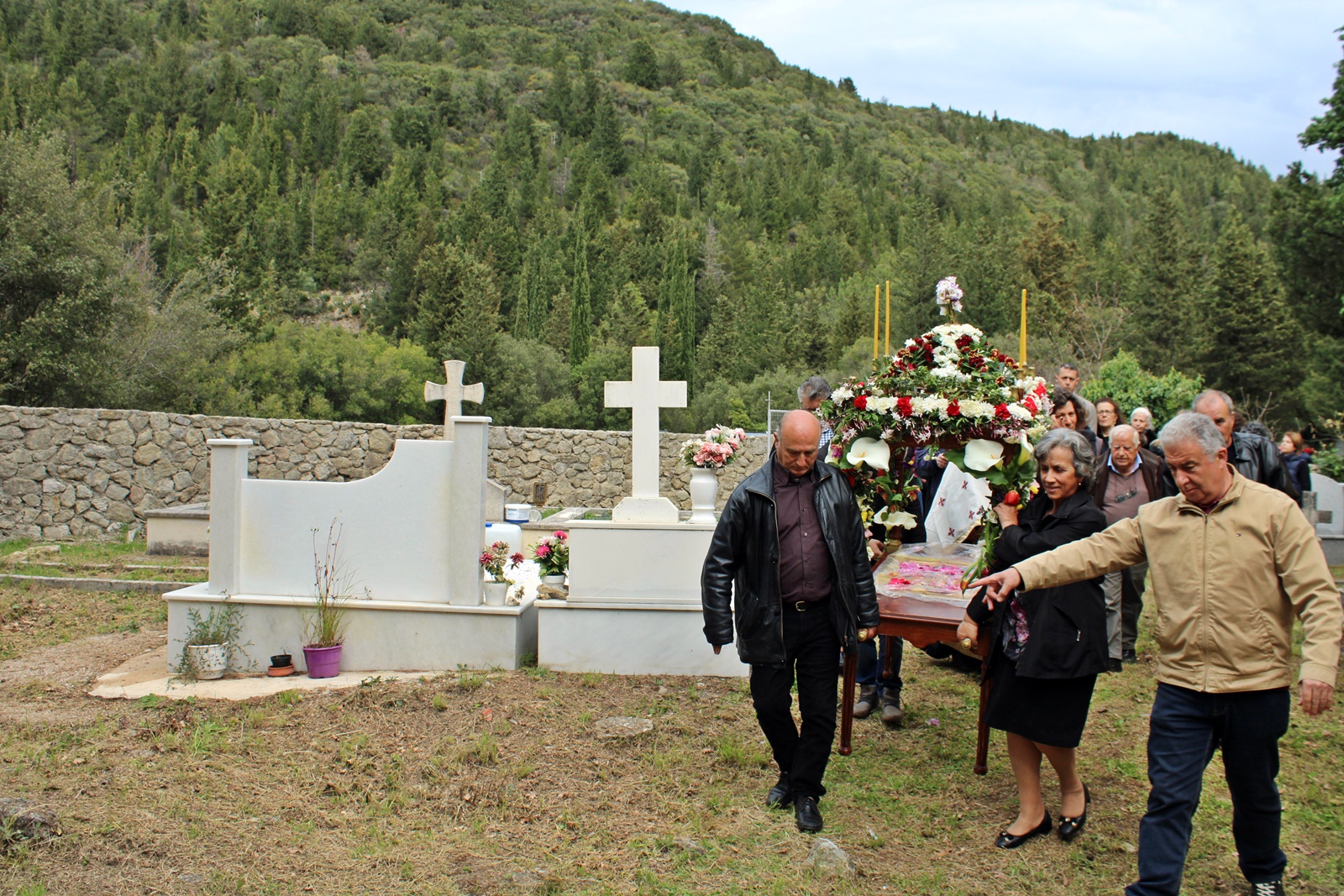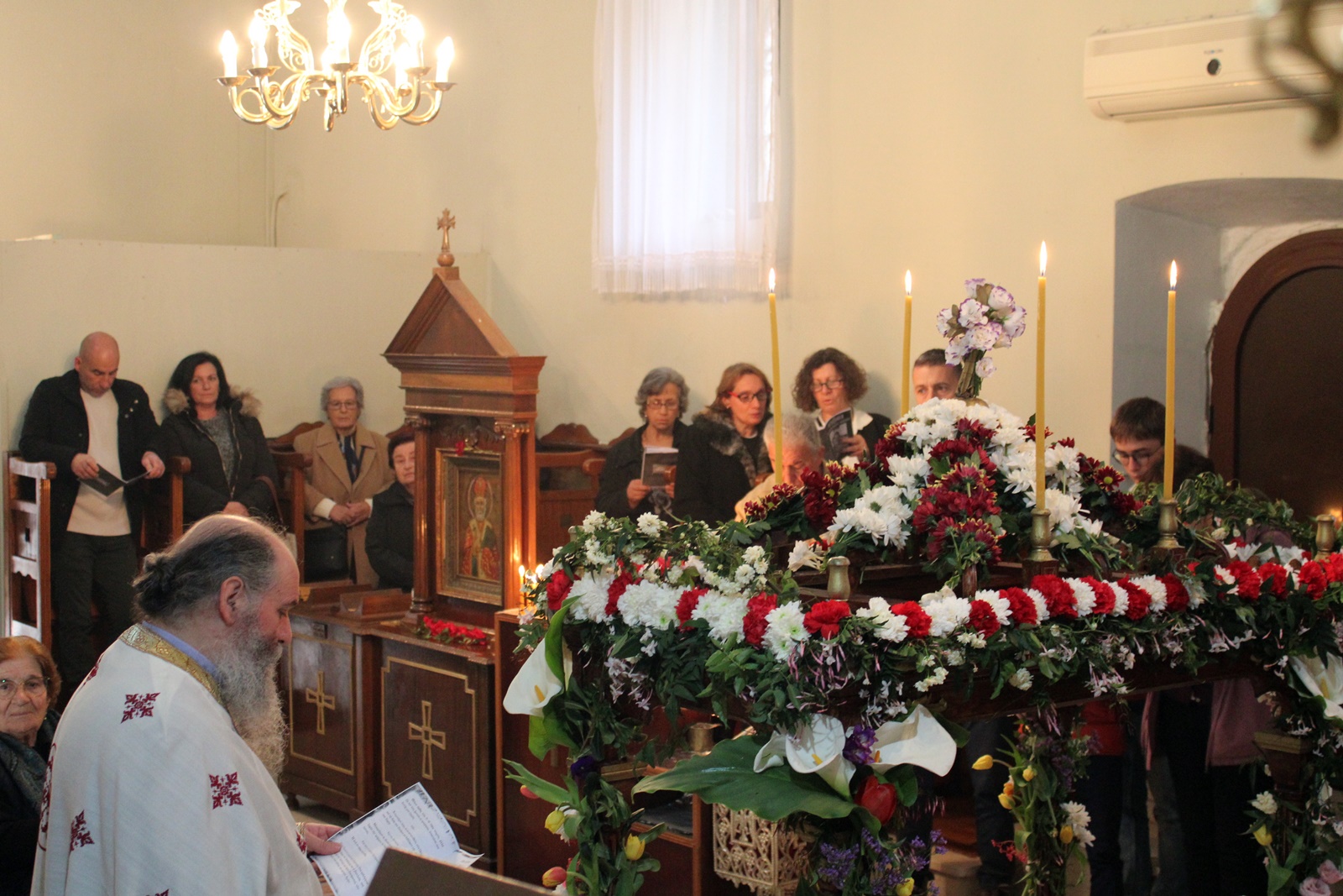 Ο παπα-Σωτήρης ευχαρίστησε ιδιαίτερα τους επιτρόπους Μπάμπη Κολυβά και Βάσω Μανωλίτση για τον ευπρεπισμό τόσο της εκκλησίας όσο και του προαύλιου χώρου καθώς και για την προετοιμασία του Επιταφίου.