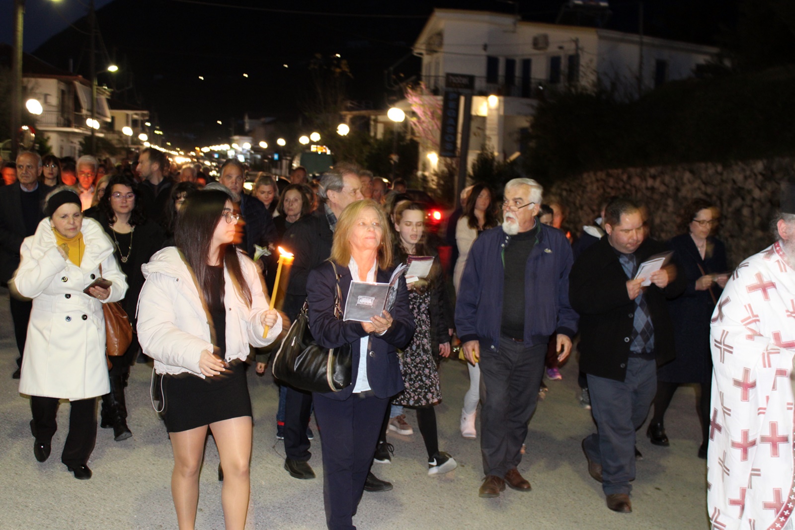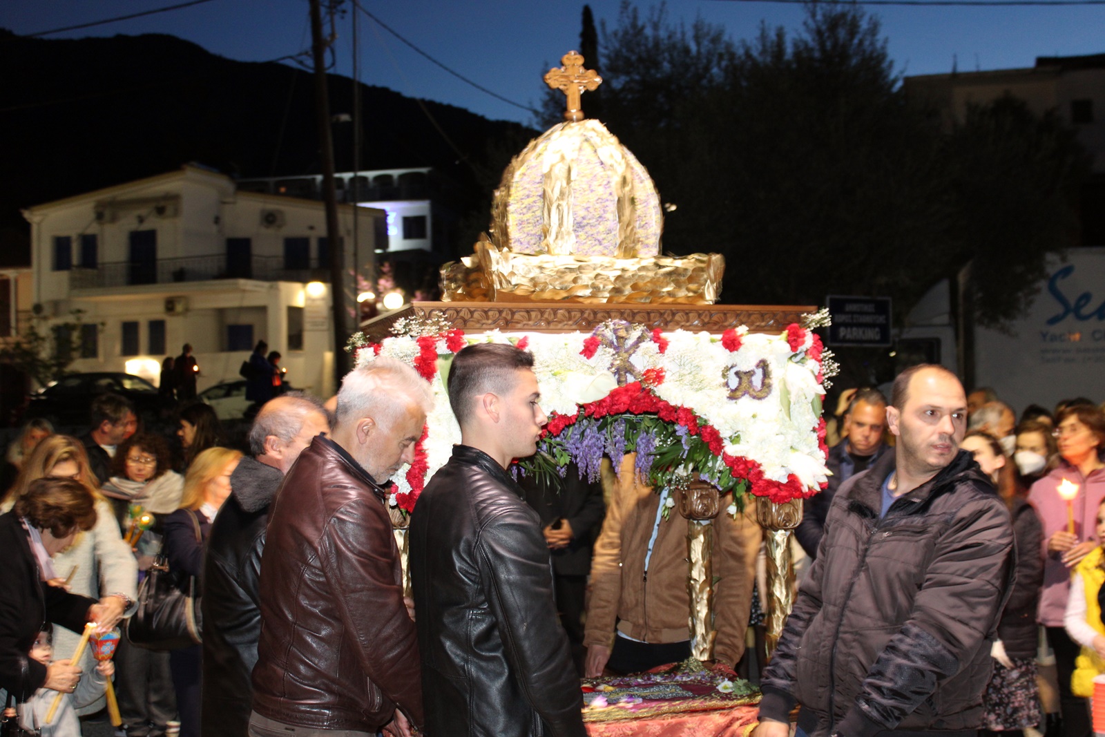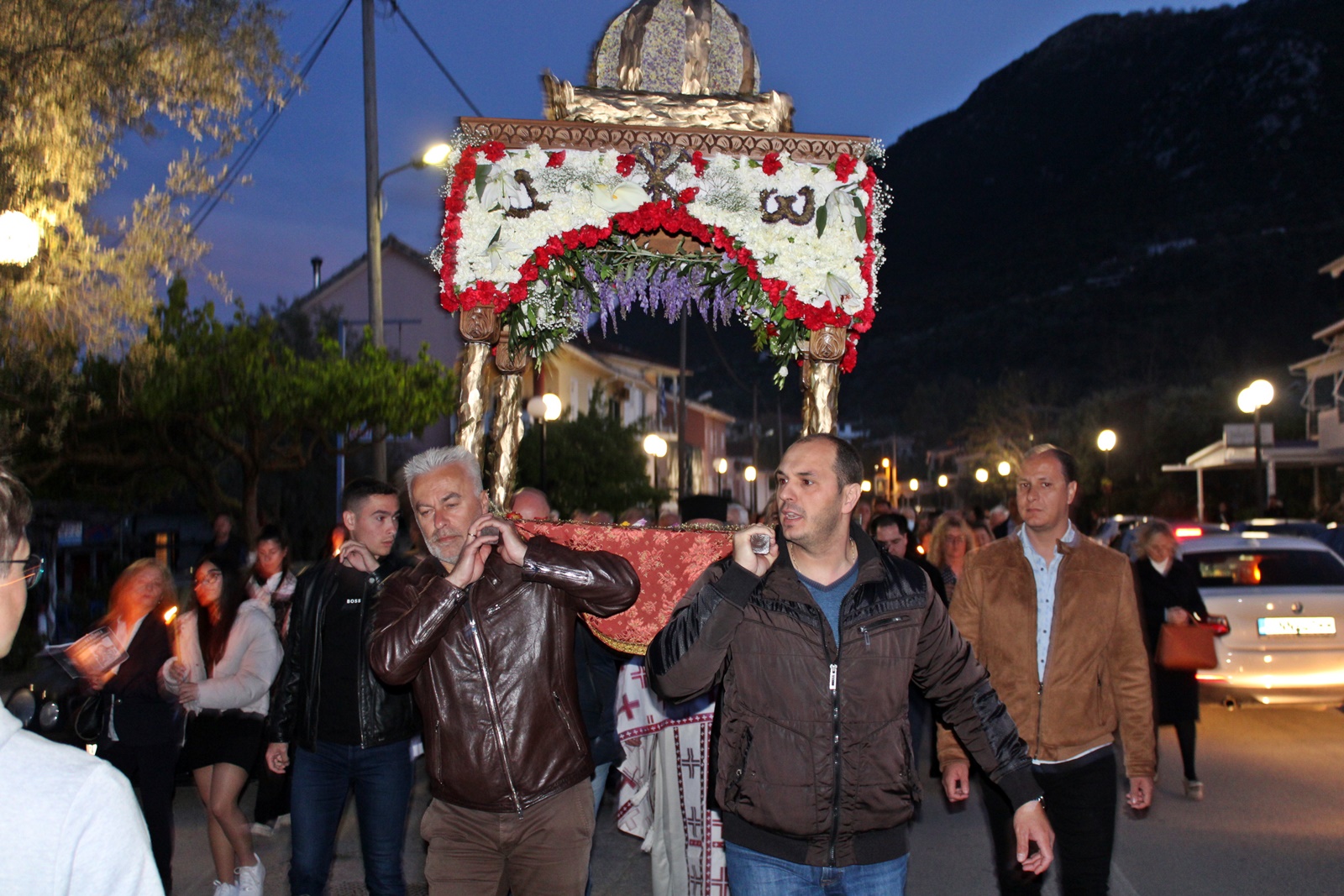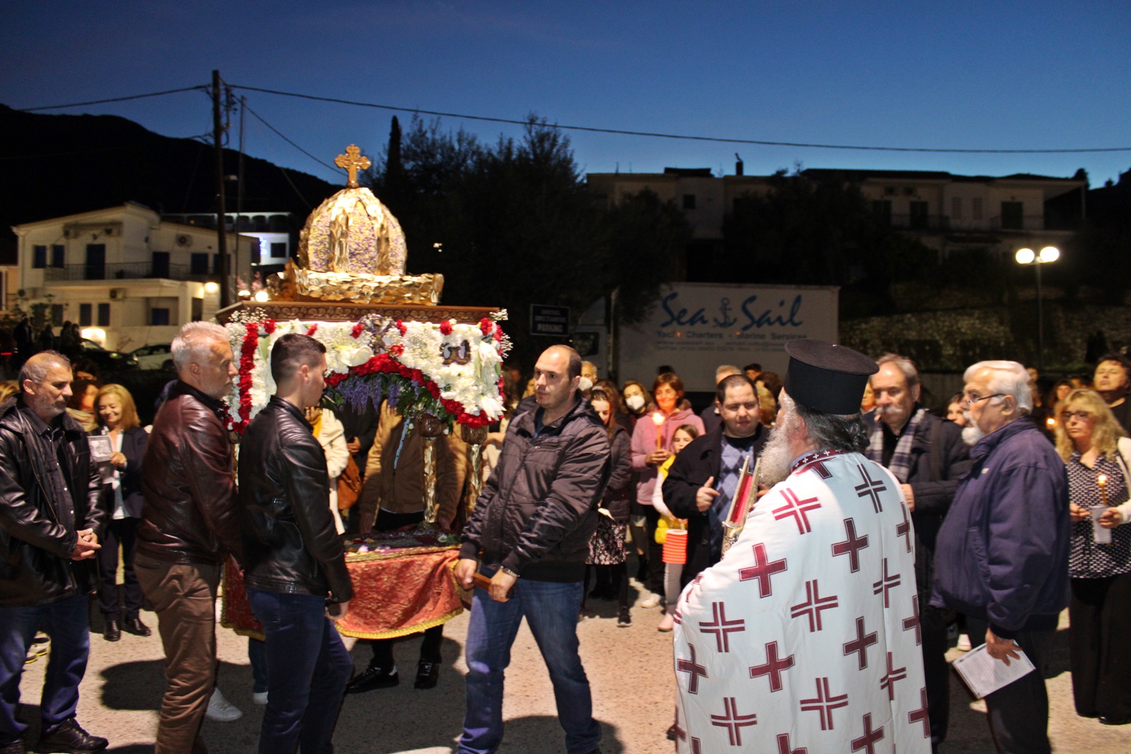 Μέχρι το λιμάνι του χωριού έφτασε η πομπή της περιφοράς του Επιταφίου του ενοριακού ναού Μεταμορφώσεως του Σωτήρος στη Νικιάνα Λευκάδας.