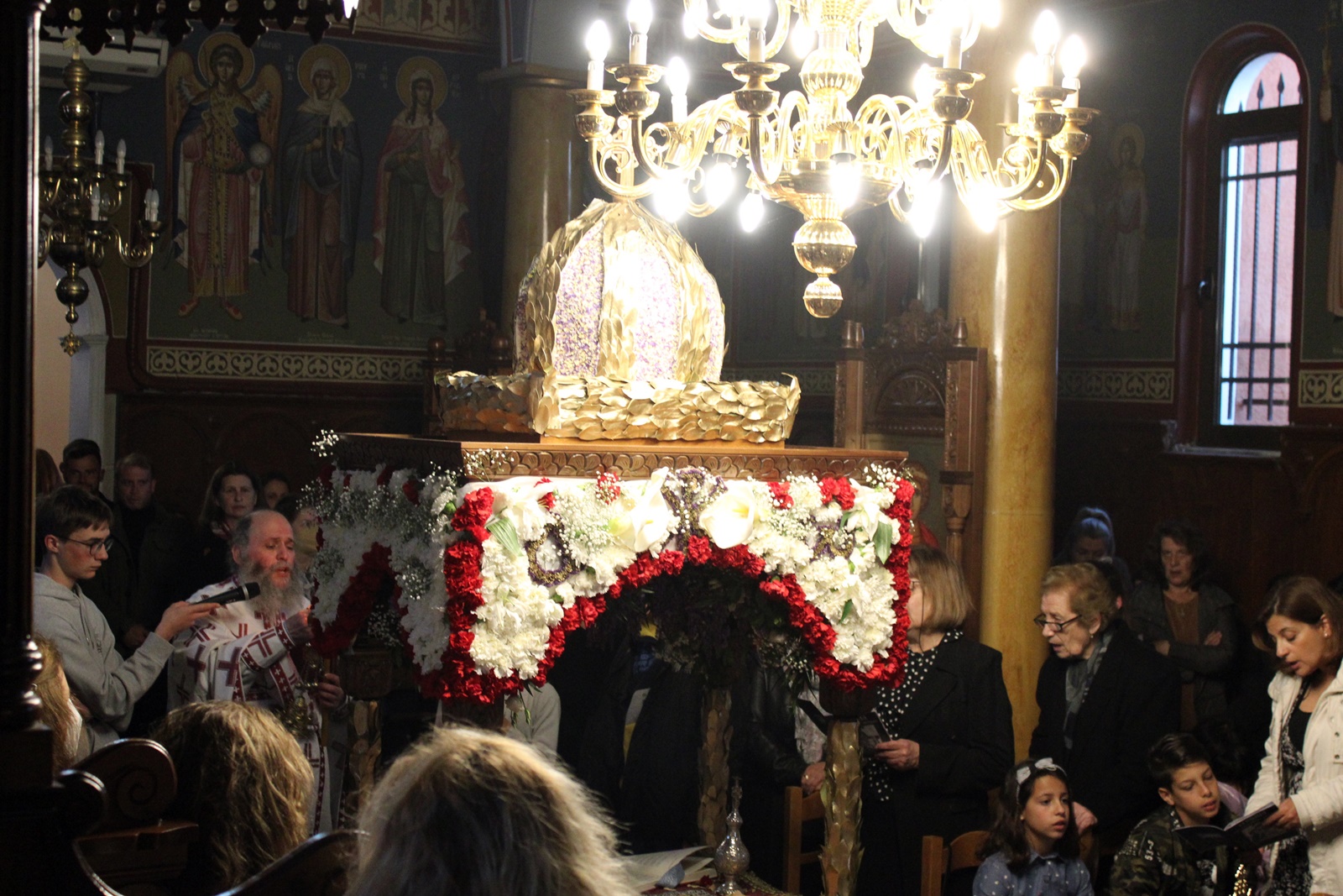 Ο Επιτάφιος θα παραμείνει στολισμένος μέσα στην εκκλησία μέχρι την Ανάληψη, ενώ οι προσκυνητές πήραν άνθη από το χέρι του ιερέα και όχι από το κουβούκλιο του Επιταφίου.