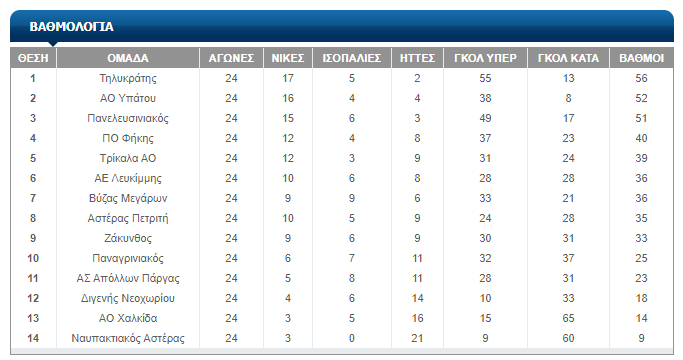 Η βαθμολογία σε 24 αγώνες