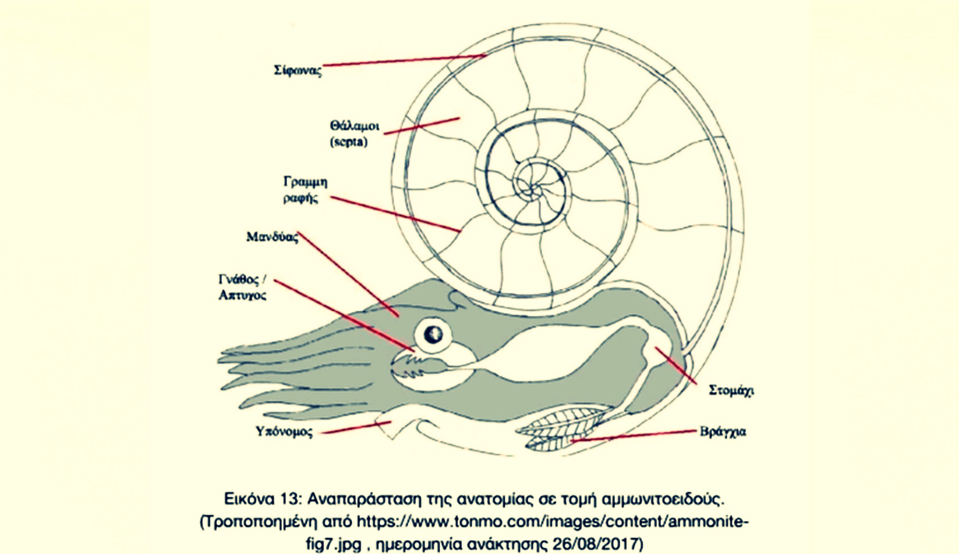(Πηγή: Στυλιανή Φραγκούλη, «Μοντέλα διδασκαλίας των απολιθωμάτων αμμωνιτών εντός και εκτός Δ.Ε.Π.Π.Σ.», Διδακτορική διατριβή, Δημοκρίτειο Πανεπιστήμιο Θράκης, 2018).