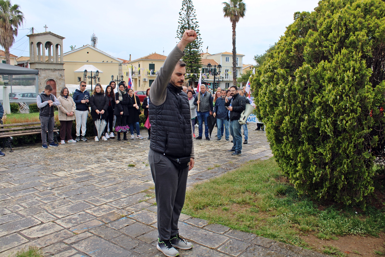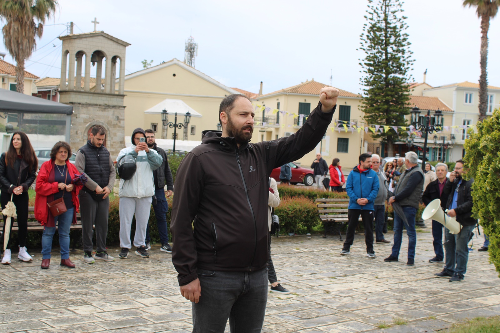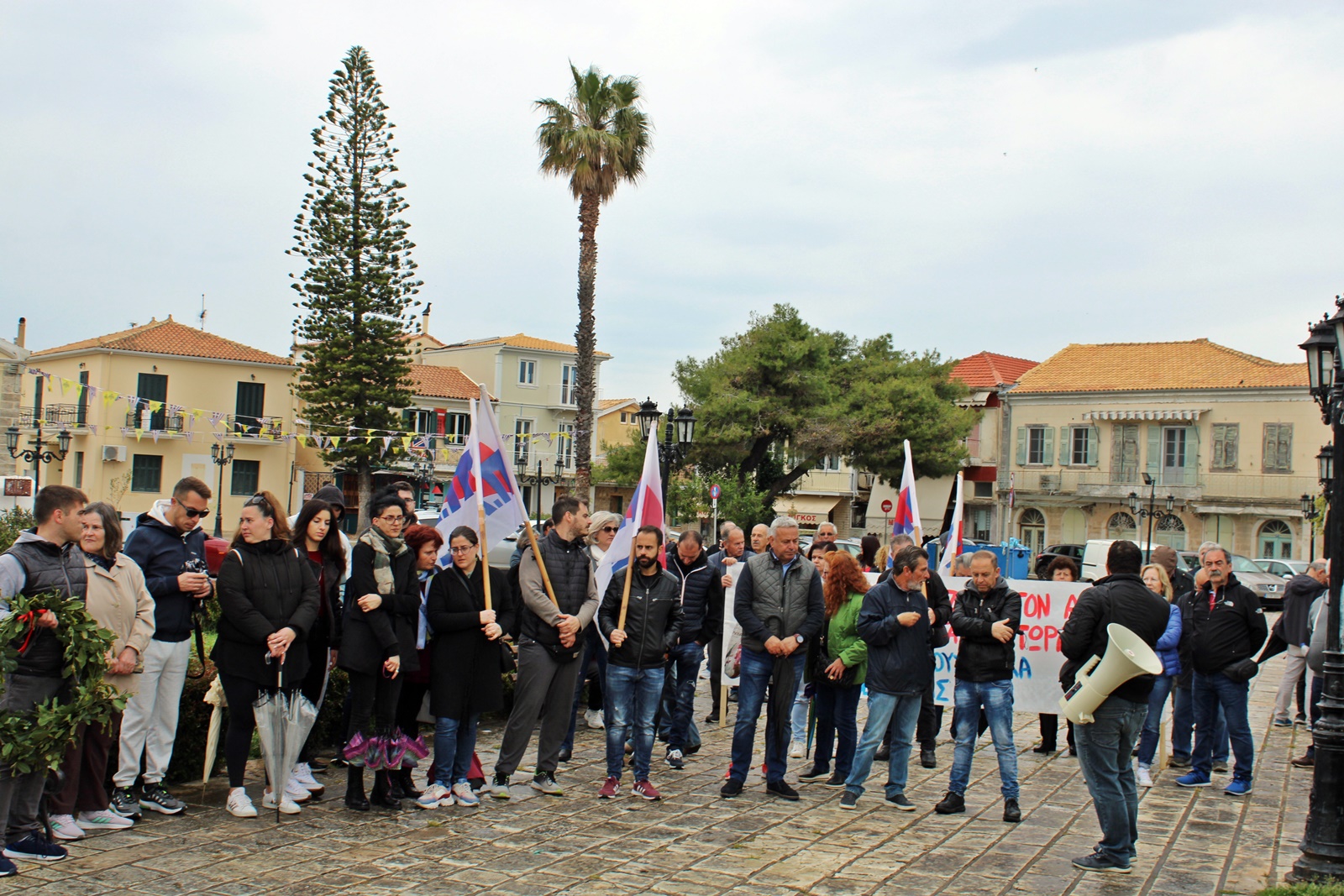 Την κεντρική ομιλία έκανε ο Αλέξανδρος Βεροιώτης, πρόεδρος του Εργατικού Κέντρου Λευκάδας-Βόνιτσας, ο οποίος μεταξύ άλλων είπε: