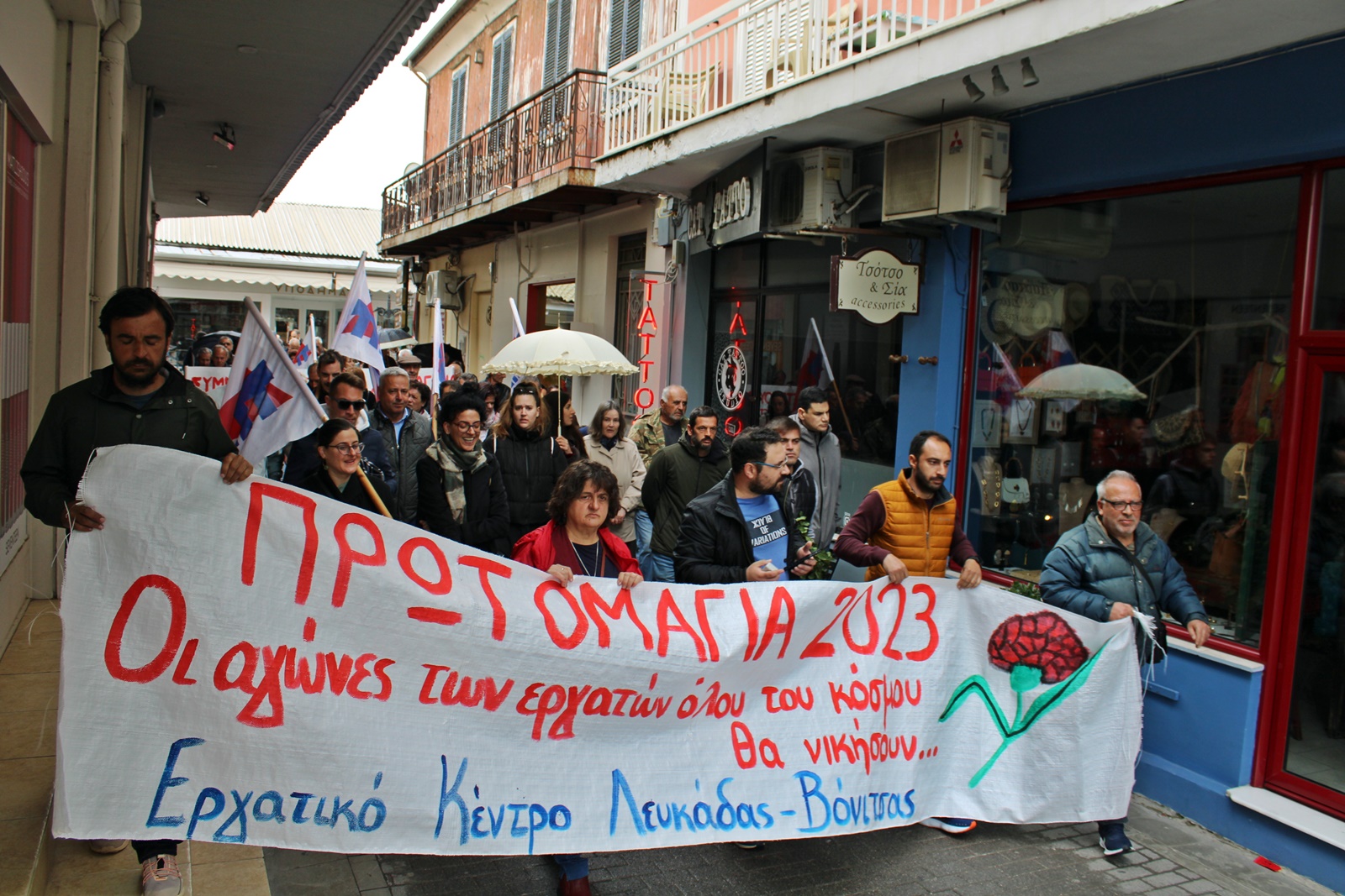 Παρά τον άστατο καιρό το Εργατικό Κέντρο Λευκάδας – Βόνιτσας καθώς και σωματεία του ιδιωτικού τομέα τίμησαν την εργατική πρωτομαγιά με απεργιακή συγκέντρωση στην πλατεία του Αγίου Μηνά στην πόλη της Λευκάδας και πορεία που ακολούθησε.