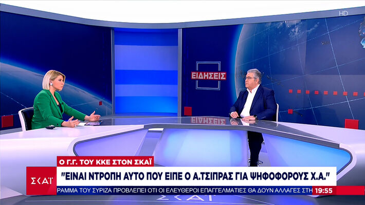 «ΚΚΕ δυνατό την Κυριακή, να το ρίξουν δαγκωτό όσοι το σκέφτονται», το κάλεσμα που απηύθυνε ο ΓΓ της ΚΕ του ΚΚΕ, Δημήτρης Κουτσούμπας, μιλώντας στο κεντρικό δελτίο ειδήσεων του «ΣΚΑΪ».