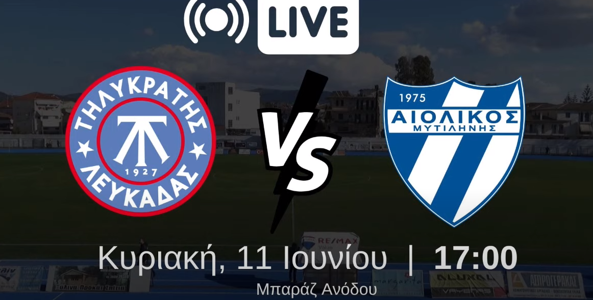 Δείτε ζωντανά το παιγνίδι Τηλυκράτης – Αιολικός Μυτιλήνης (Κυριακή 11 Ιουνίου 2023, 5:00 το απόγευμα, Δημοτικό Στάδιο Λευκάδας «Πλάτωνας Γρηγόρης») για την 7η αγωνιστική των αγώνων μπαράζ ανόδου στη Super League 2.