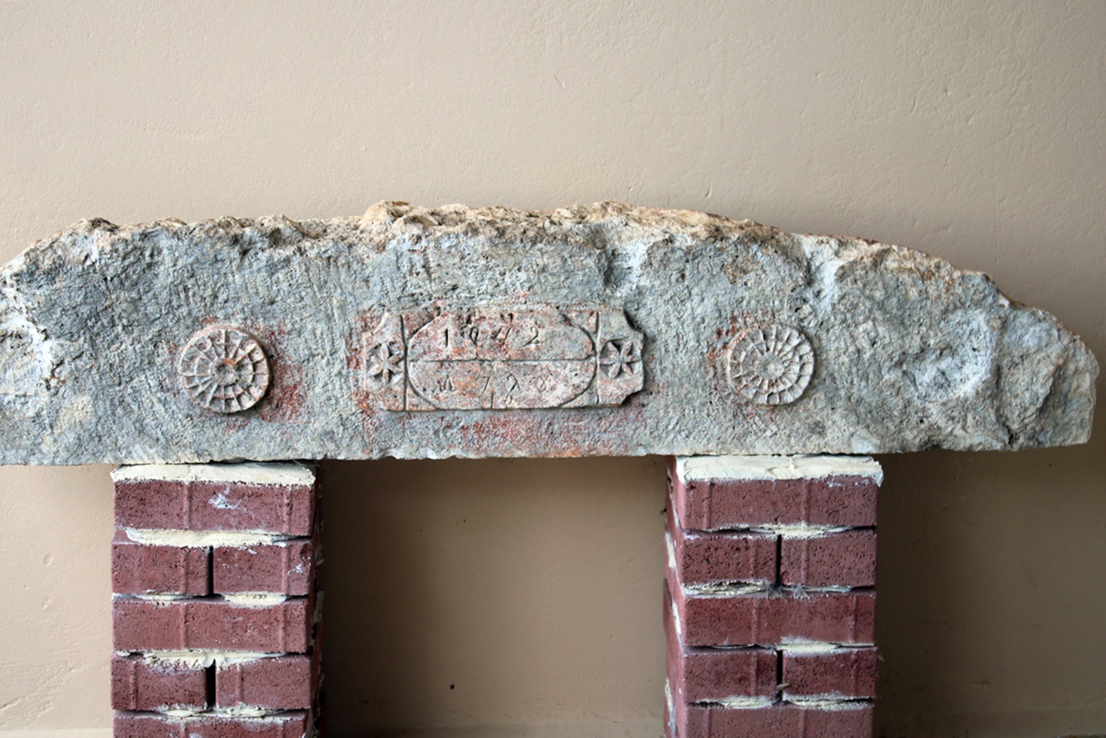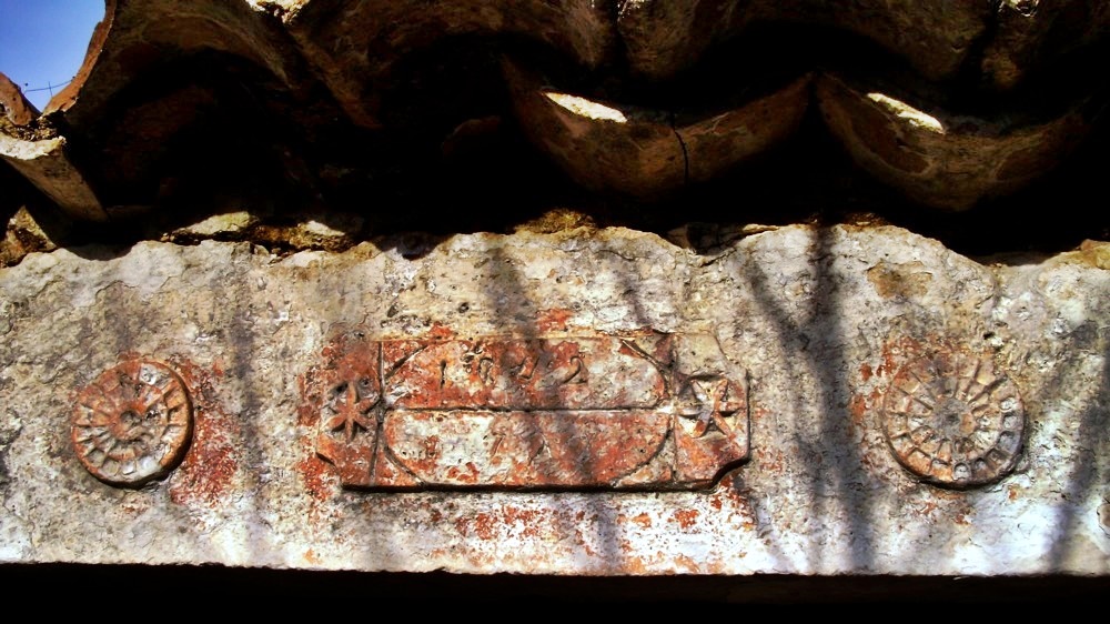 Ανώφλι σπιτιού με ημερομηνία ανέγερσης και κυκλικά σύμβολα που μοιάζουν με ηλιακούς δίσκους ή ρόδακες από τα Κολυβάτα Αλεξάνδρου. Τα ανάγλυφα σύμβολα είχαν κυρίως προστατευτικό ρόλο και λειτουργούσαν μάλλον ως φυλακτά. Ίσως όμως να ήταν και οι ανάγλυφες “υπογραφές” των Ηπειρωτών μαστόρων που είχαν χτίσει τα σπίτια. Στο ανώφλι διαβάζουμε την χρονολογία 1842 και από κάτω, δίπλα από ένα ακόμη γράμμα, την ημερομηνία 10 Ιουλίου [Ι λ ου 10].