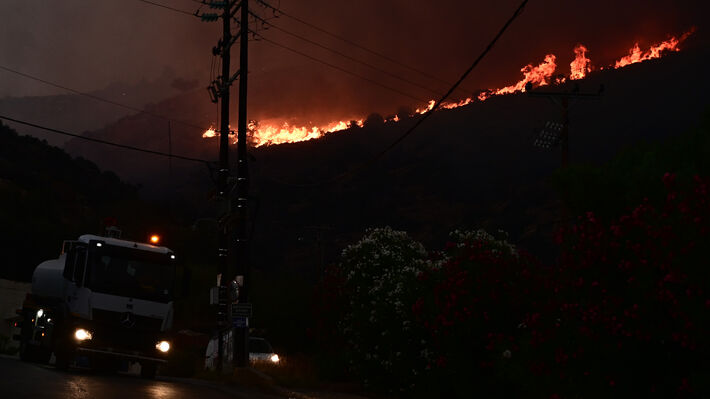Εξακολουθεί να μαίνεται η πυρκαγιά σε διάφορα σημεία της Ανατολικής Αττικής με τη νύχτα να προμηνύεται δύσκολη.