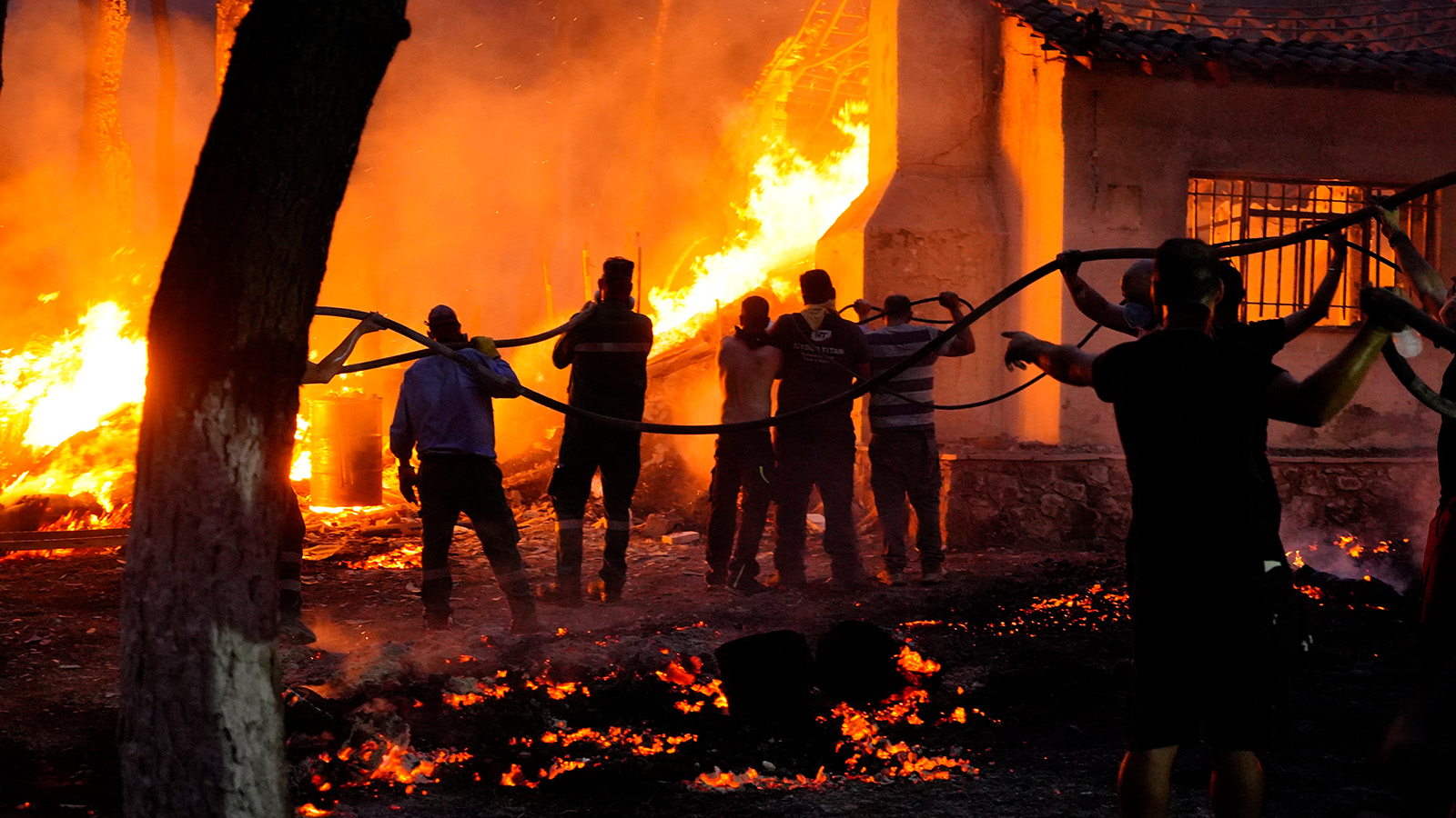 Στον οικισμό Άγιος Γεώργιος, στη Μάνδρα, ένα σπίτι κάηκε, ενώ απειλούνται και άλλες κατοικίες.