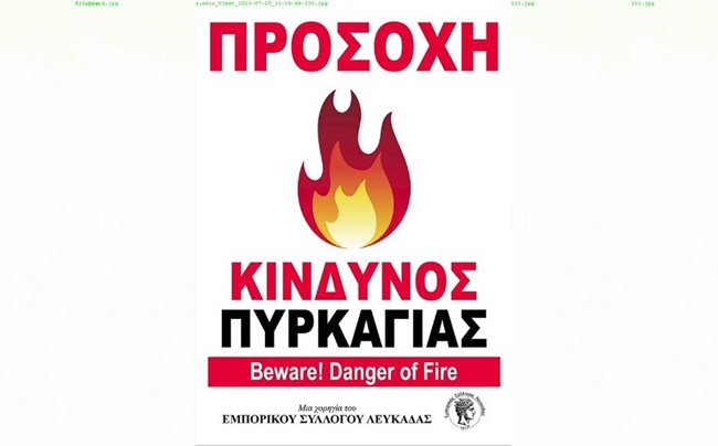 Προειδοποιητικές πινακίδες για τον κίνδυνο πρόκλησης πυρκαγιάς από τον Εμπορικό Σύλλογο Λευκάδας | Λευκαδίτικα Νέα - Lefkada News