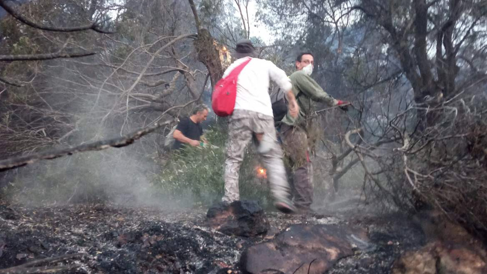 Κάτοικοι με ότι μέσα διαθέτουν, εθελοντές και πυροσβέστες καταβάλλουν μεγάλες προσπάθειες να οριοθετήσουν τις εστίες που υπάρχουν στο πυκνό δάσος μέχρι το μεσημέρι, αφού τότε αναμένεται να ενισχυθούν οι άνεμοι. Οι προσπάθειες δυσκολεύουν γιατί η περιοχή είναι κατάφυτη και δύσβατη.