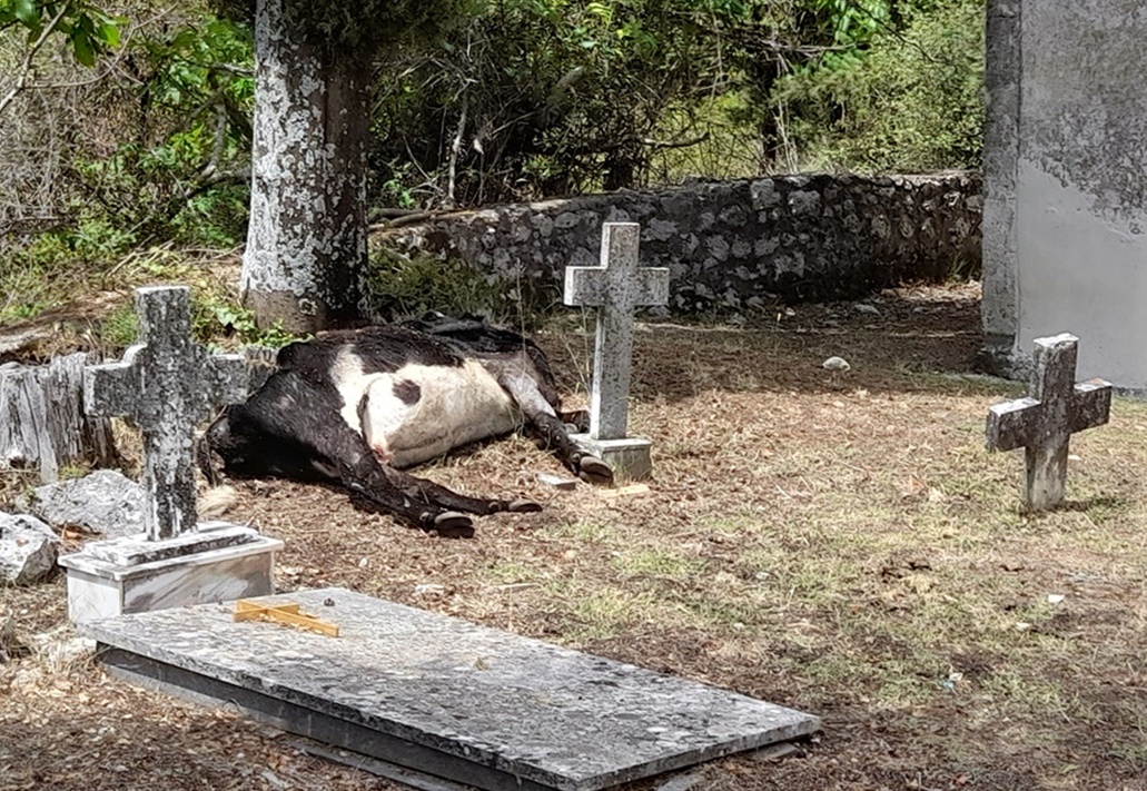 Απομακρύνθηκε το κουφάρι της αγελάδας από το πρώην νεκροταφείο του ΙΝ Αγ. Δημητρίου Αλεξάνδρου | Λευκαδίτικα Νέα - Lefkada News
