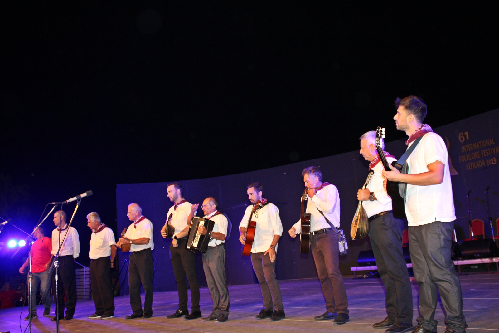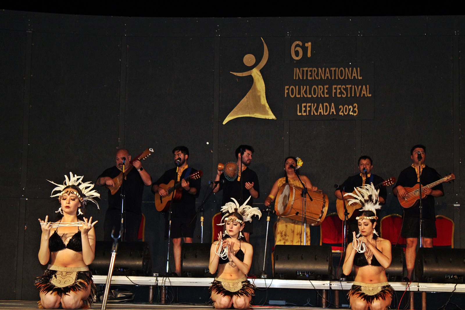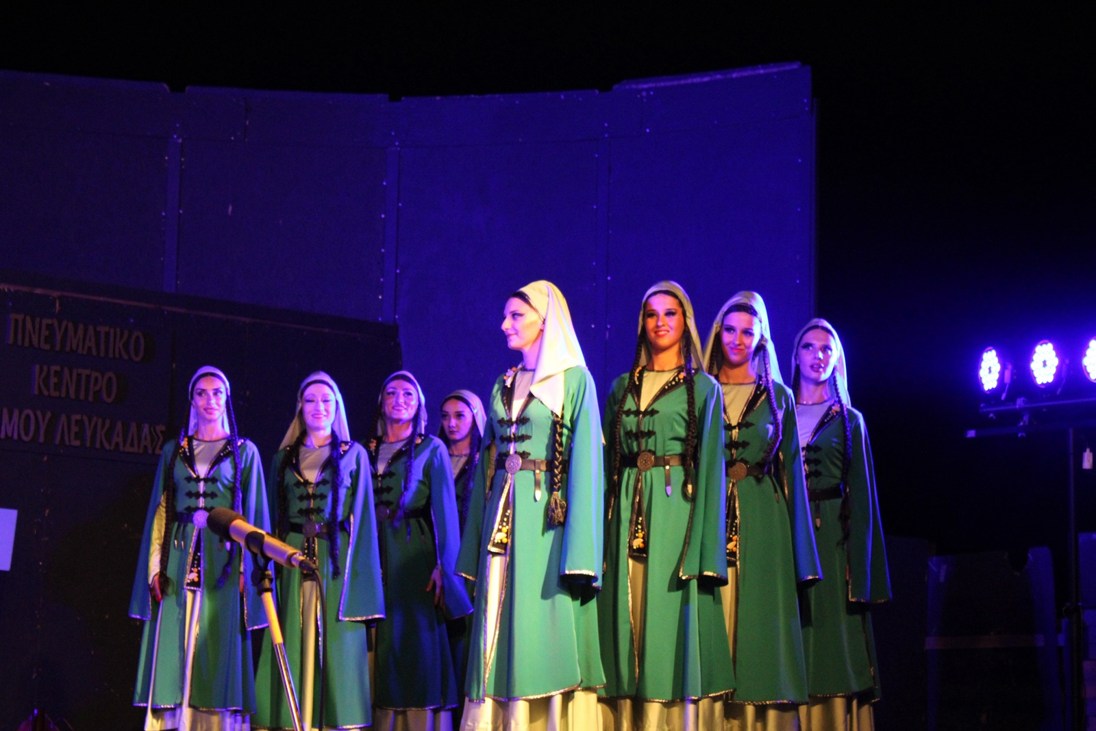 Ακολούθησε η αντιπροσωπευτική εμφάνιση 13 συγκροτημάτων που έχουν φτάσει στον τόπο μας, με τον πιο μακρινό δρόμο να έχει κάνει το συγκρότημα της Χιλής που ταξίδευε για δύο μέρες. Εμφανίστηκαν κατά σειρά και για όσο διάστημα βρισκόμαστε στο χώρο τα συγκροτήματα: «Ορφέας» Λευκάδας, Γεωργία, «Απόλλων» Κρυάς. Μεξικό (ήταν και το πιο εντυπωσιακό από όσα είδαμε), Χορευτικός Όμιλος Λευκάδας, Ένωση Ποντίων Πιερίας και Χιλή. Για λόγους ανωτέρας βίας αναγκαστήκαμε να φύγουμε και ζητάμε συγνώμη για όσα συγκροτήματα δεν μπορέσαμε να παρουσιάσουμε και ιδιαίτερα από τη «Νέα Χορωδία Λευκάδας».