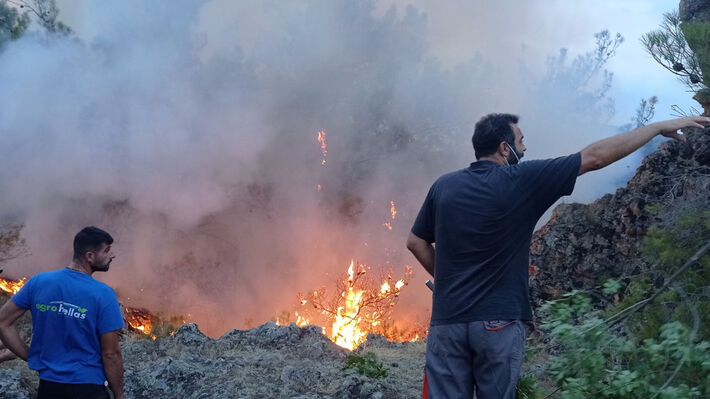 Στην Άνδρο βελτιωμένη είναι η εικόνα, αφού πρώτα η φωτιά κατέκαψε τα πάντα κοντά στο χωριό Γίδες.
