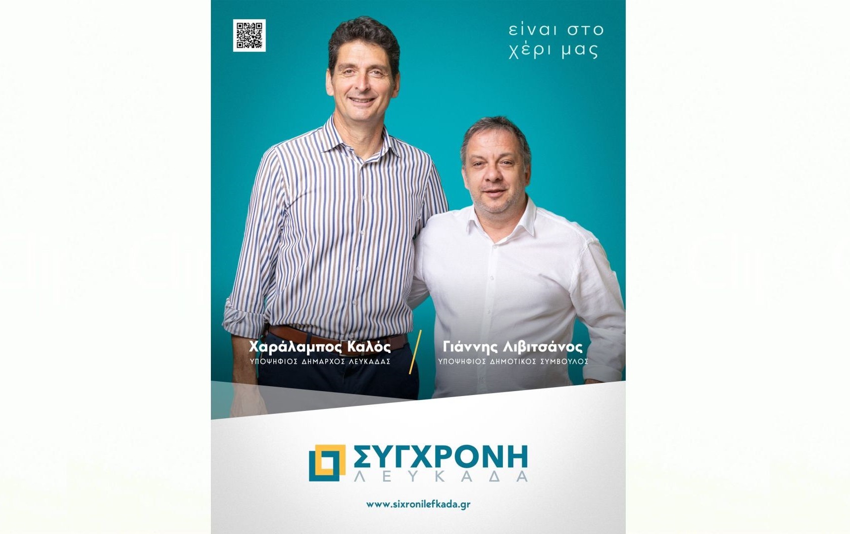 Ανακοινώνω την συμπόρευση της παράταξης «ΚΟΙΝΩΝΙΑ ΠΟΛΙΤΩΝ» στις επερχόμενες Δημοτικές εκλογές με την παράταξη του Δημάρχου «ΣΥΓΧΡΟΝΗ ΛΕΥΚΑΔΑ» και υποψήφιο Δήμαρχο Χαράλαμπο Καλό.