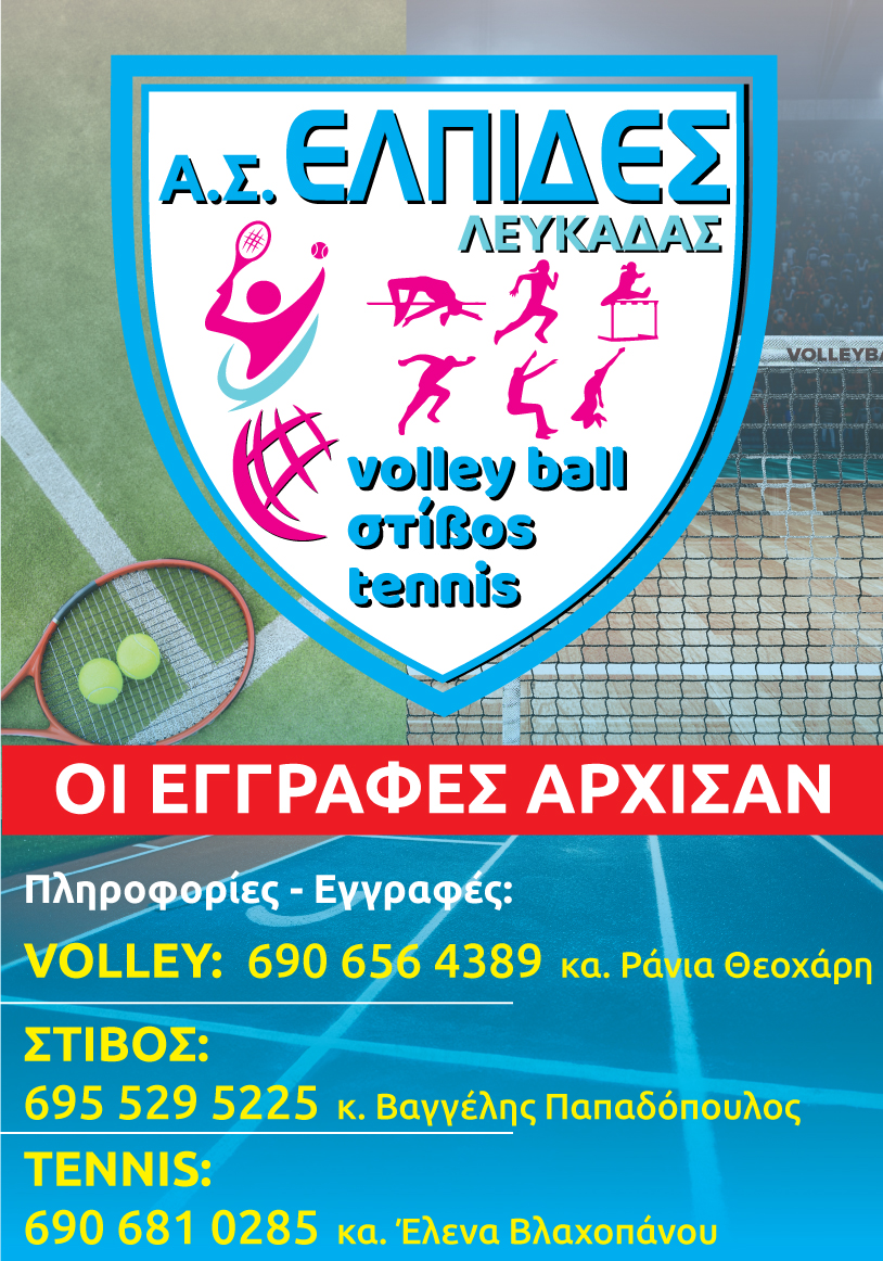 Ξεκίνησαν οι εγγραφές στον ΑΣ Ελπίδες Λευκάδας (volley ball, στίβος, tennis).