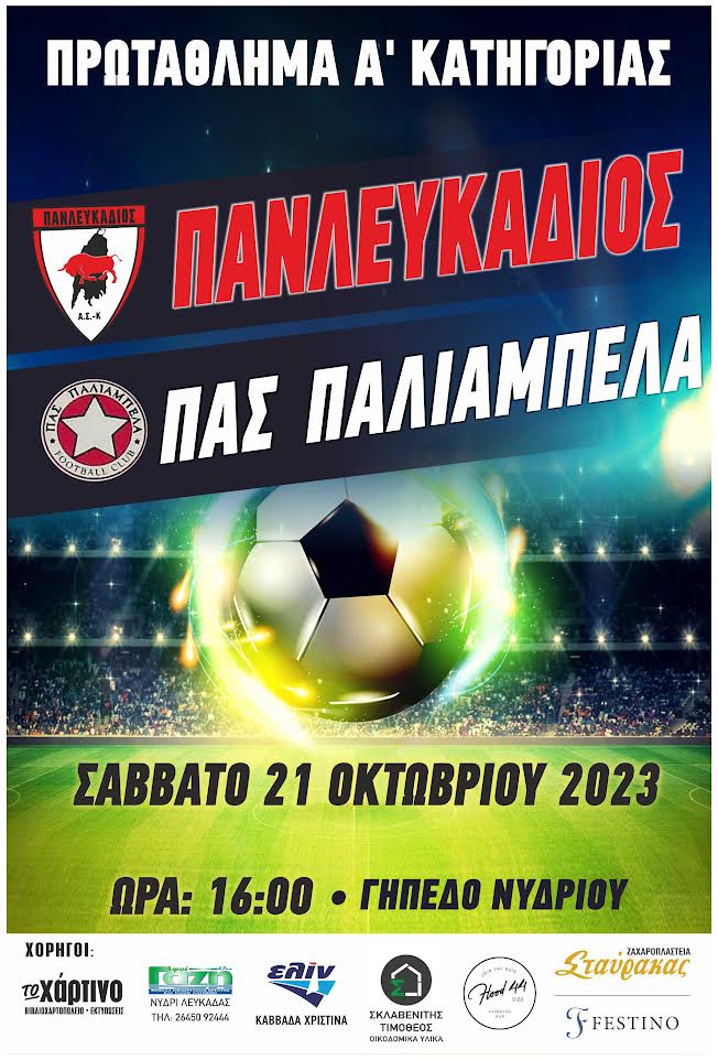 Με τον ΠΑΣ Παλιάμπελα θα παίξει το Σάββατο 21 Οκτώβρη 2023, στις 4:00 μ.μ., στο Γήπεδο Νυδριού, ο Πανλευκάδιος για την 3η αγωνιστική της Α΄ ΕΠΣ Πρέβεζας-Λευκάδας.
