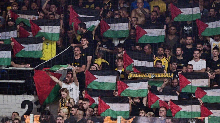 Με σημαίες της Παλαιστίνης εξέφρασαν την αλληλεγγύη τους οι φίλοι της ΑΕΚ