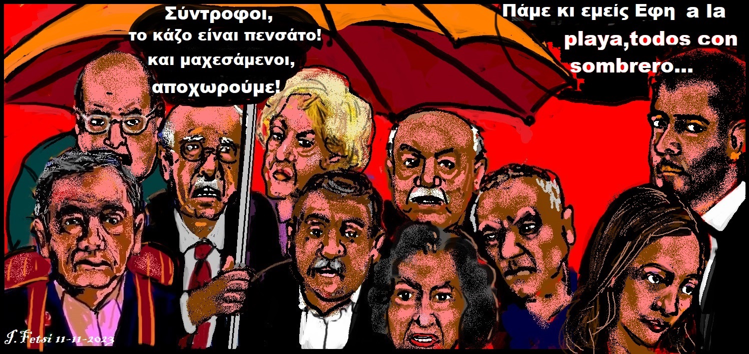 Και έτσι τώρα βγάζουν τα μάτια τους στην τσακωμάρα.. και ίσως αργότερα όλο αυτό το άθλιο σκηνικό ώς κομματική και πολιτική ζωή, το παρουσιάσουν οι διαφωνούντες ( ομπρέλες- 6+6, Αχτσιόγλου, κίνηση των 53 κλπ κομμάτια) ώς αντιστασιακή δομή στην αυταρχική κομματική ηγεσία, και η κομματική ηγεσία Τσίπρα- Κασσελάκη ώς σωτήρες της κομματικής και πολιτικής ζωής.
