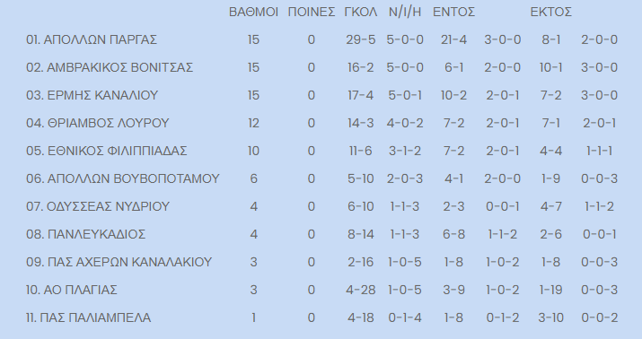 Τα αποτελέσματα της 6ης αγωνιστικής της Α΄ ΕΠΣ Π.-Λ.