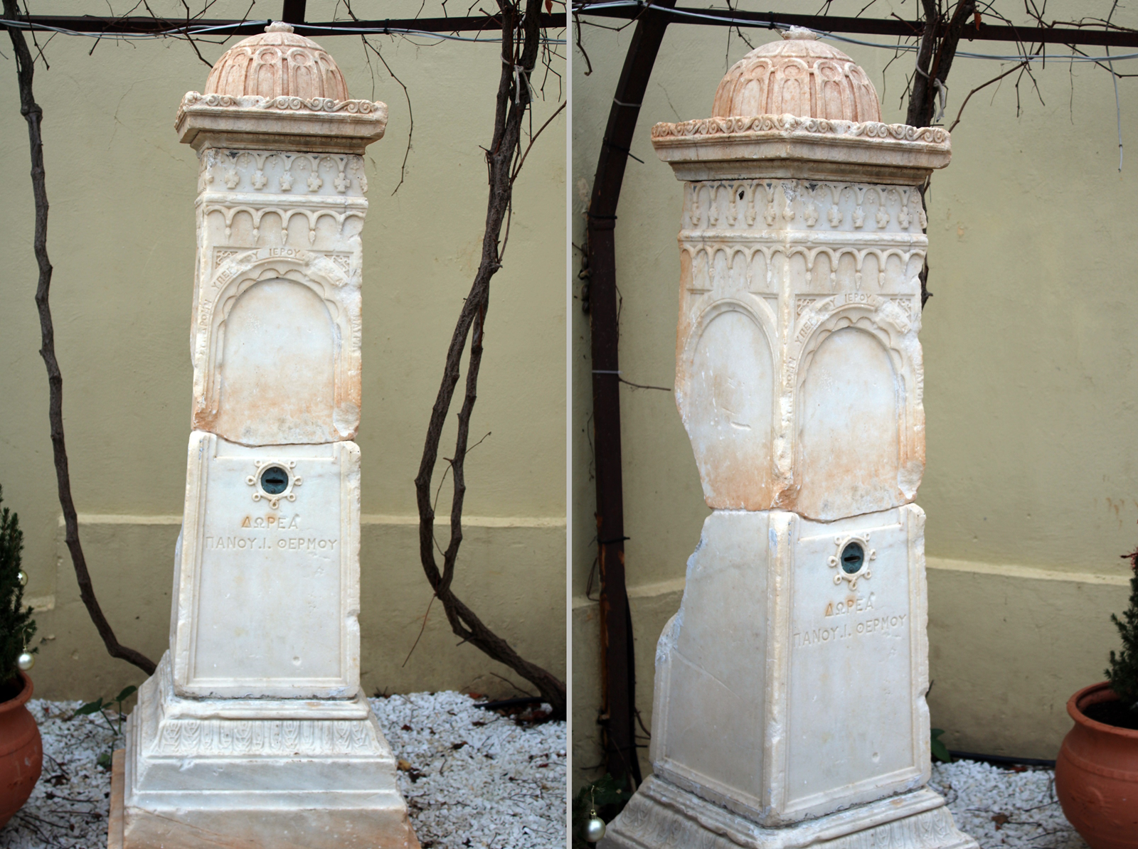 Περισσότερες πληροφορίες για την μαρμάρινη στήλη καταθέτει ο π. Σπυρίδων Κωνσταντής ο οποίος σχολιάζει: