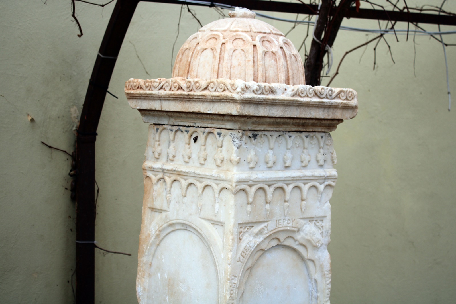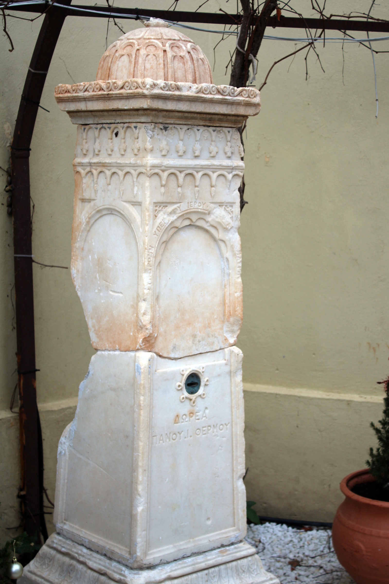 Ένα άνω των 100 ετών υπαίθριο σκαλιστό μαρμάρινο προσκυνητάρι-παγκάρι της Αγίας Μαύρας (Ανανεωμένο)