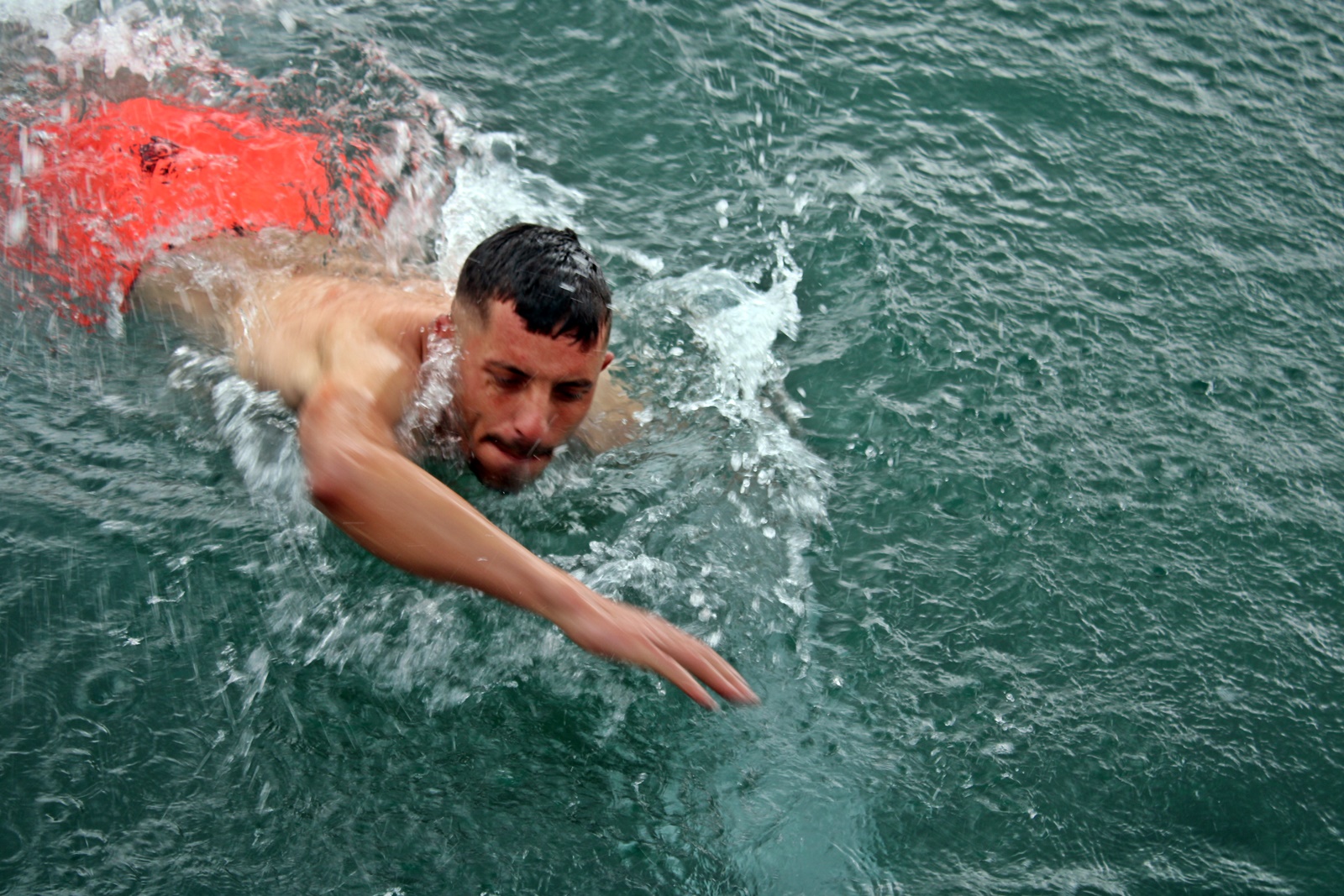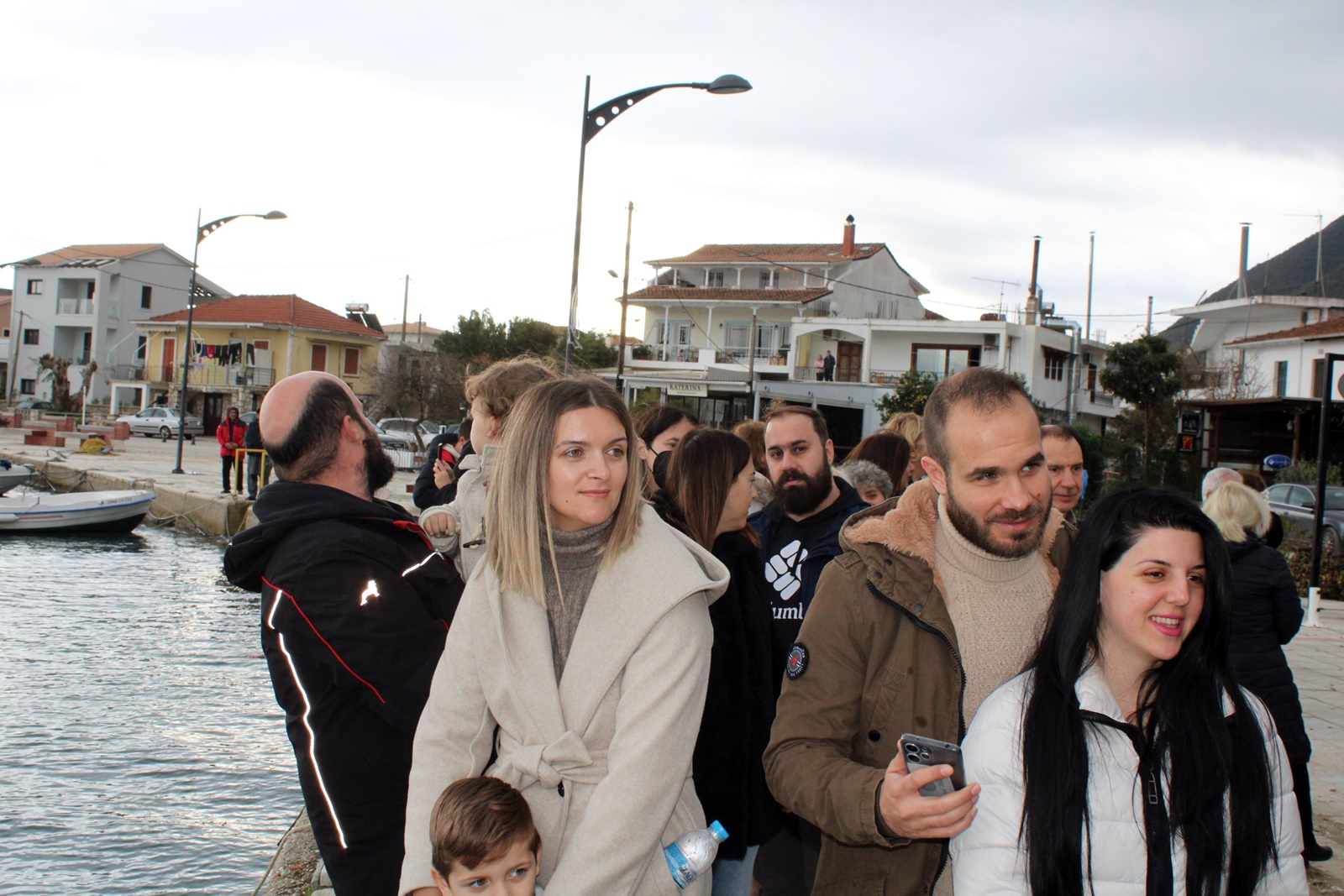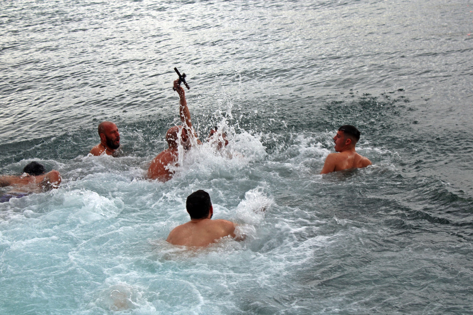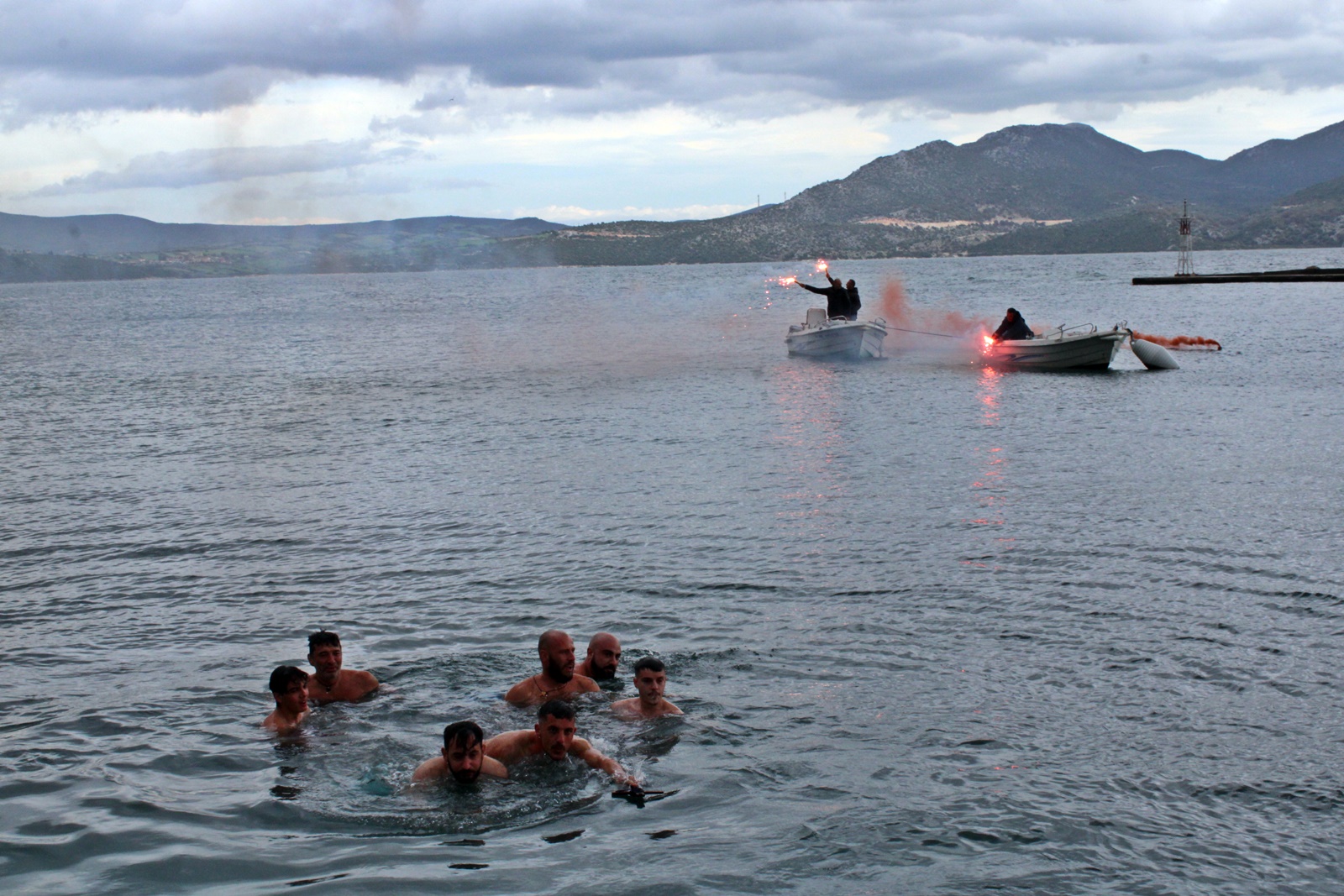 Έξι ήταν φέτος οι τολμηροί που βούτηξαν για να πιάσουν τον σταυρό μετά το τρίτο «Εν Ιορδάνη βαπτιζομένου σου Κύριε…», με τον συνήθη ύποπτο Δημήτρη Μανωλίτση να τον πιάνει και πάλι φέτος πρώτος.