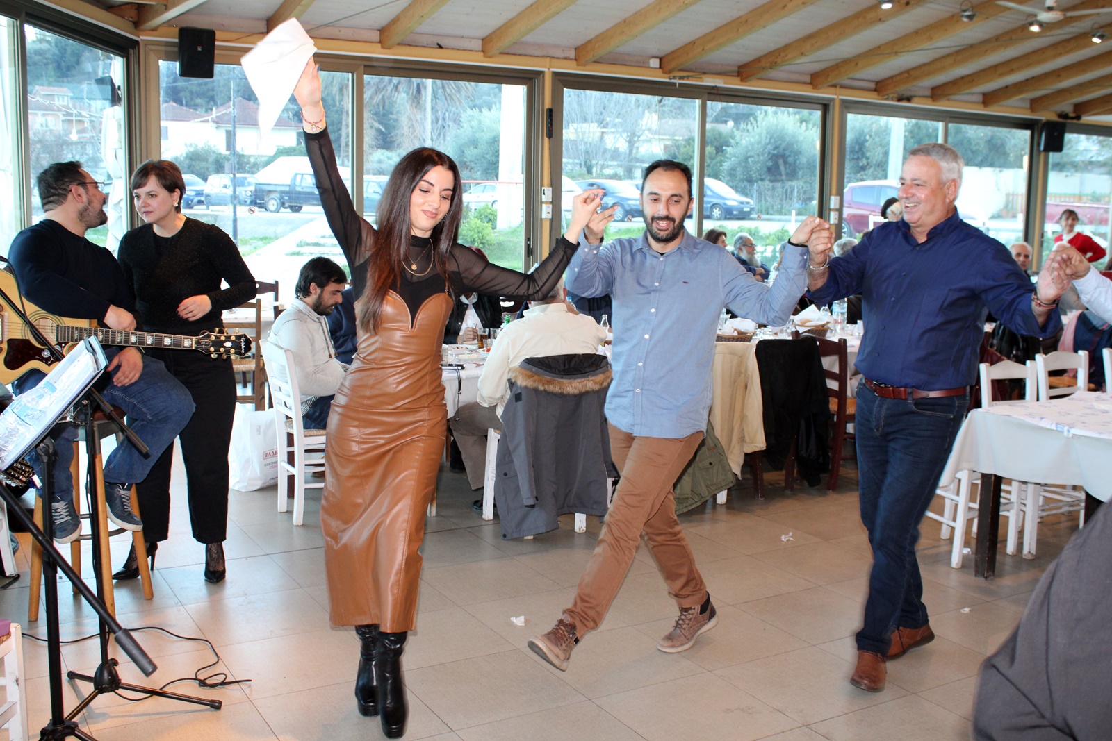Ακολούθησε η κοπή της Πρωτοχρονιάτικης πίτας και στη συνέχεια χορός και γλέντι με ζωντανή μουσική από λαϊκο-δημοτική ορχήστρα με τους μουσικούς: Κώστα Αρματά (κλαρίνο), Λάκη Σταύρακα (τραγούδι), Μαρία Ναστούλη (τραγούδι), Στέλιο Ζαβιτσάνο (τραγούδι), Αυγουστίνο Καραβία (πλήκτρα), Βαγγέλη Βερροιώτη (κιθάρα), Θεριανό Δημήτρη (μπουζούκι) και Βαγγέλη Κοψιδά (πλήκτρα).