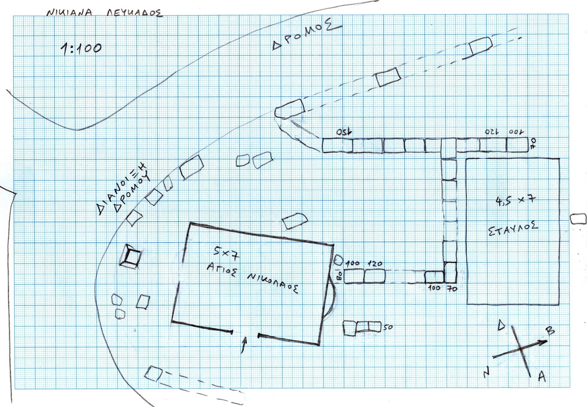 Τα θεμέλια του αρχαίου οικοδομήματος όπως έχουν καταγραφεί από τον Αναστάσιο Στάμου