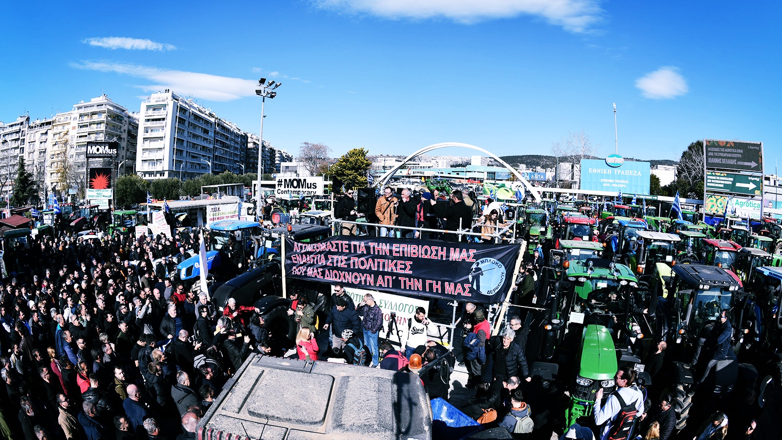 Αγρότες, κτηνοτρόφοι, μελισσοκόμοι, από τη Μακεδονία, τη Θεσσαλία, την Ήπειρο, τη Στερεά, πλημμύρισαν μέσα κι έξω τις εγκαταστάσεις της ΔΕΘ, όπου πραγματοποιείται η 30η Agrotica, βροντοφωνάζοντας «Τώρα με τα πόδια και με τα τρακτέρ, αν δεν δικαιωθούμε θα γίνει Κιλελέρ» και «αγρότες ενωμένοι ποτέ νικημένοι».