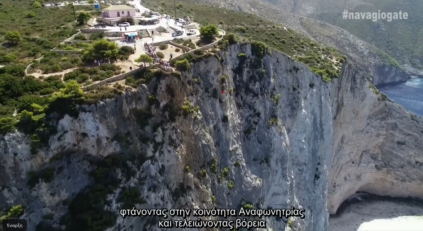 Φωτογραφία από ντοκιμαντέρ του Navagiogate, στην οποία απεικονίζεται η πωληθείσα περιοχή του Ναυαγίου από τα Ορεινά
