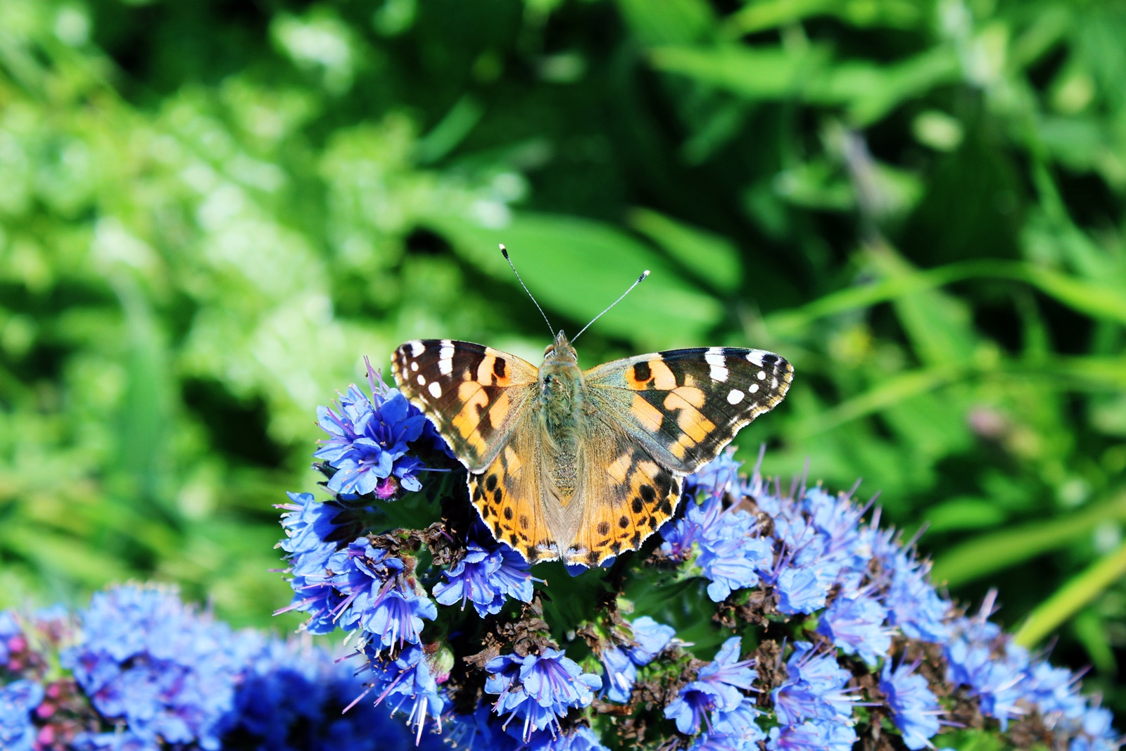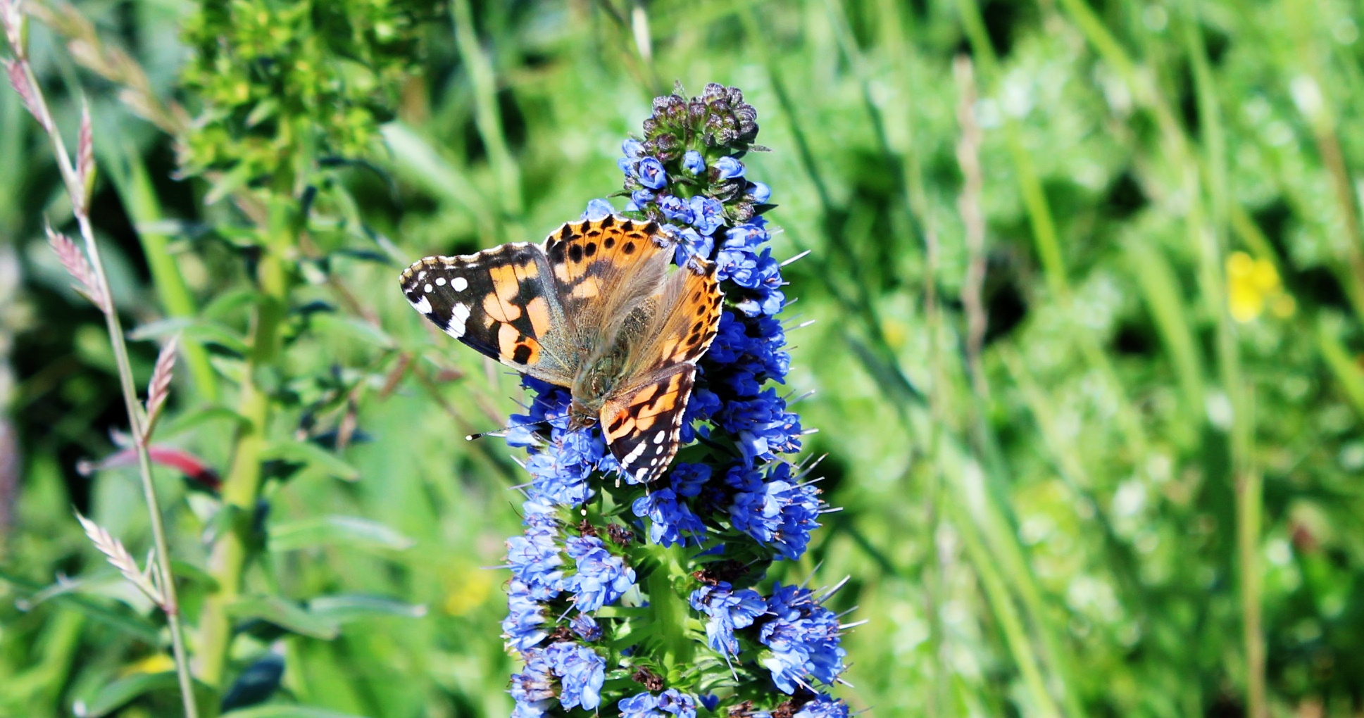 Πεταλούδες του τόπου μας: Μια Βανέσα του κάρδου (Vanessa cardui) πάνω σε άνθη του Έχιου